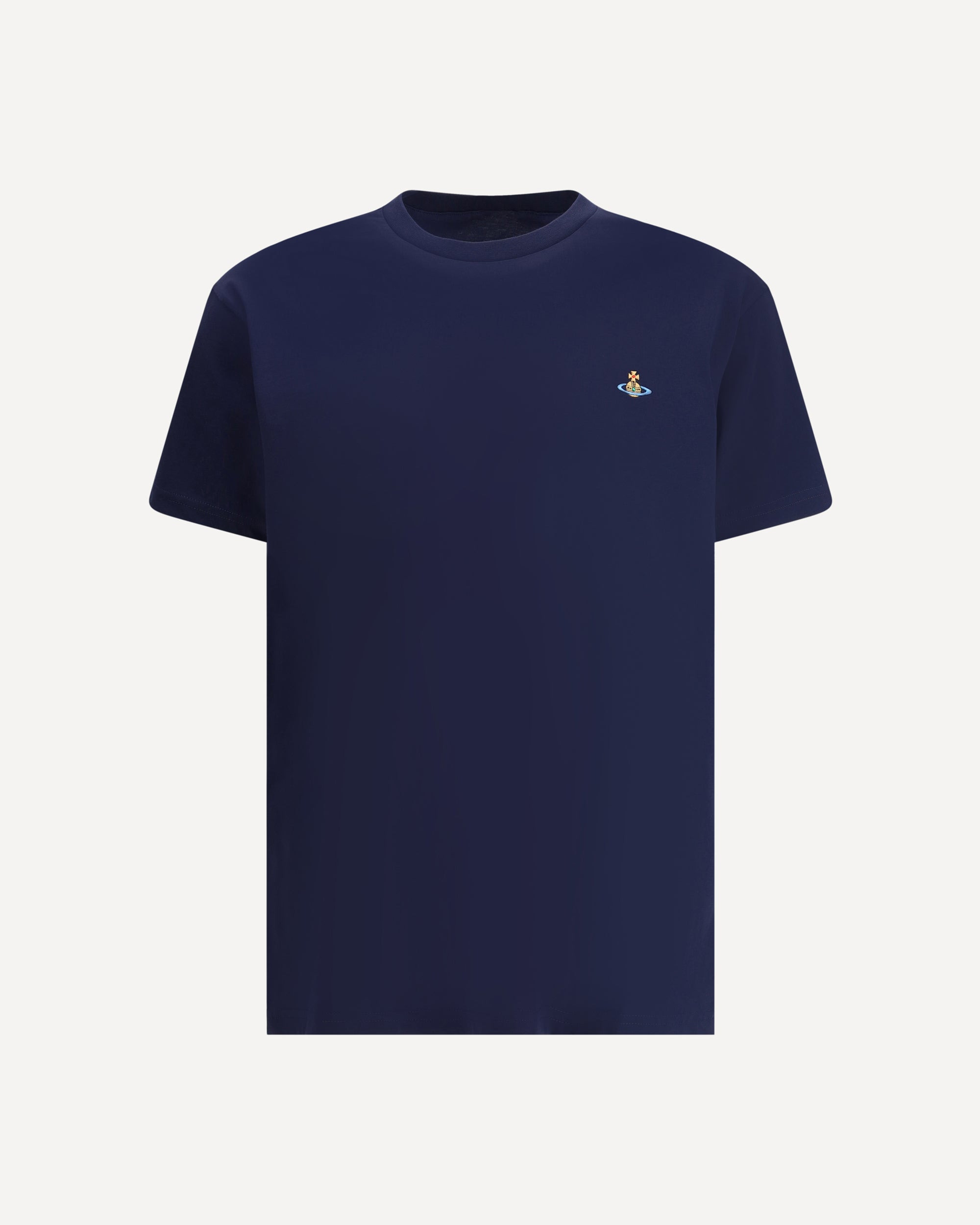Vivienne Westwood's cotton T-Shirt is an essential garment with distinctive character. Made from soft cotton, it features a classic ribbed crew neck and the iconic Orb logo embroidered in contrast on the front for a recognizable and timeless touch. DETAILS - Sku: 3G010013J001M_K410 - Season: AW25 - Fit: Regular - Composition: GENERAL 100% Cotton - MADE IN TUNISIA