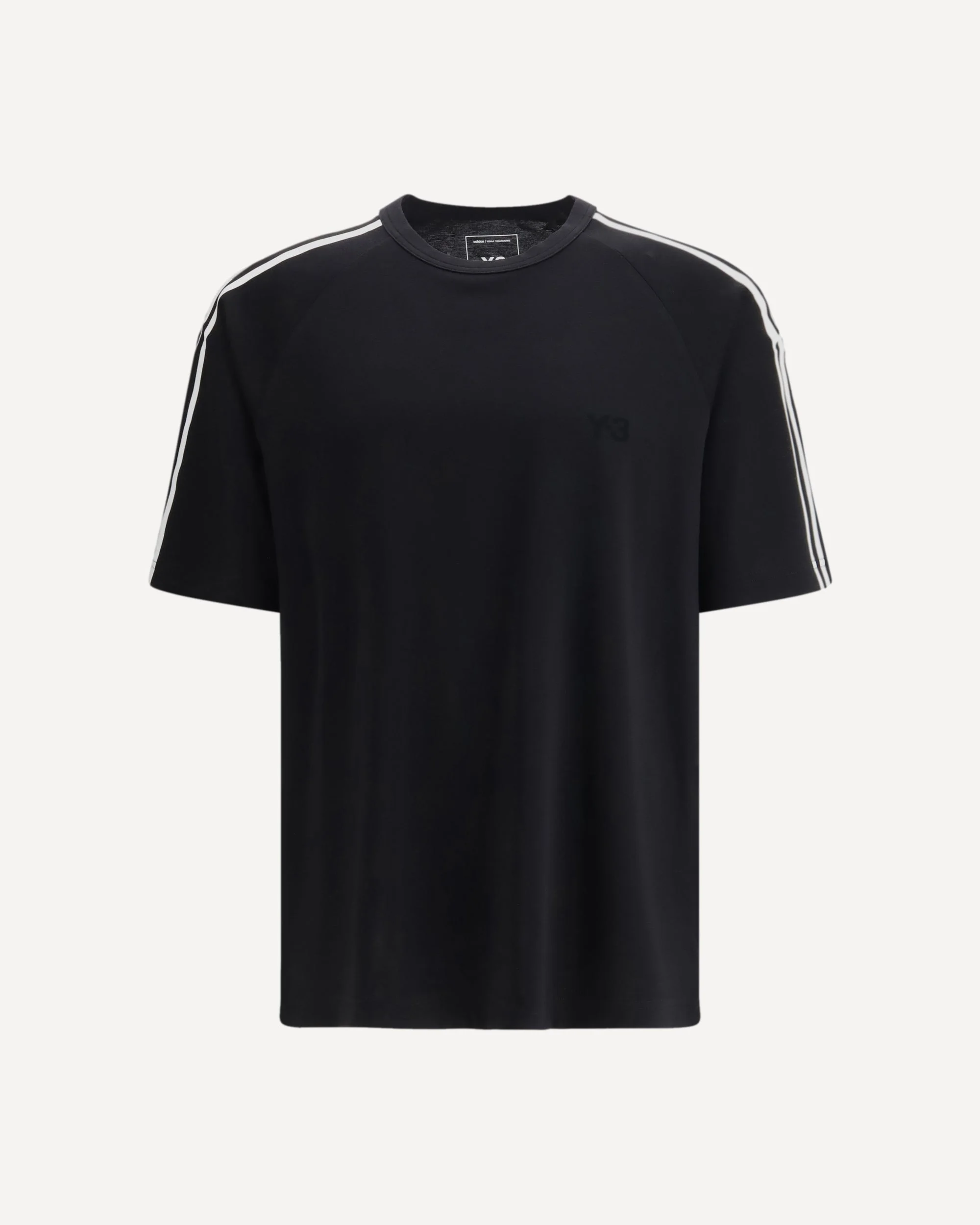 The short-sleeve T-shirt with 3 Stripes by Y-3 blends simplicity with conceptual design, reworking an everyday essential through the brand’s sportswear heritage. It features a relaxed fit with a ribbed crew neck and is defined by the iconic 3 Stripes, partially crafted with metallic yarn to allow subtle shape play. The soft, slightly stretchy fabric—made from a refined blend of lyocell, nylon, and sheep’s wool—offers comfort with a modern, elevated feel. DETAILS - Sku: JW7352_BLACK - Season: SS26 - Fit: Regular - Composition: GENERAL 60% Lyocell 20% Nylon 15% Sheep 5% Elastane - MADE IN THAILAND
