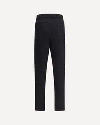 The Roccia jeans in stretch Black Cotton by Zegna combine elegance and functionality in a modern slim fit. Featuring a zip and button fastening and a garment-dyed finish for an authentic touch, the stretch fabric ensures comfort and ease of movement. With their classic five-pocket design, these jeans are versatile and durable, inspired by workwear aesthetics and the values of Oasi Zegna in the Italian Alps DETAILS - Sku: UEL36A8CITYE_001 - Season: AW25 - Fit: Slim - Composition: GENERAL 98% Cotton 2% Elastane
