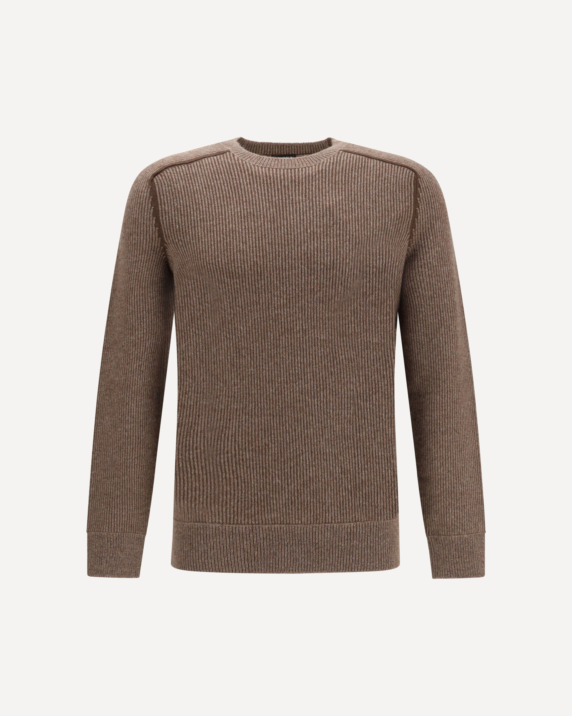 The Cashmere Crew Neck Sweater by Zegna is an essential piece with refined style. Its ribbed texture enhances the luxurious yarn, while darker-toned lines emphasize the shoulder construction, adding depth and character to the design. A garment that blends comfort and sophistication, perfect for everyday elegance. DETAILS - Sku: UGK61A2110_503 - Season: AW25 - Fit: Regular - Composition: GENERAL 100% Kashmir/capra Hircus - MADE IN ITALY