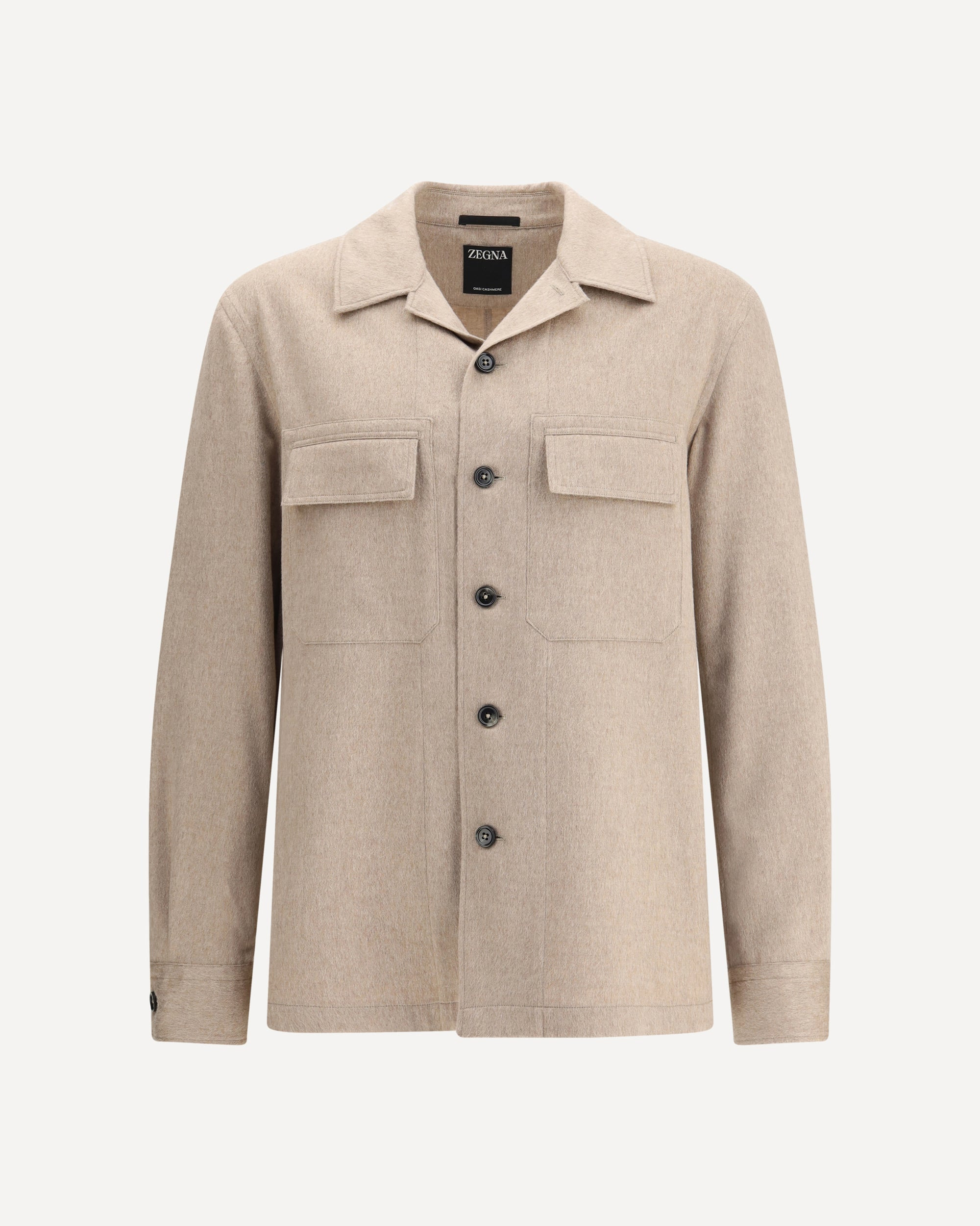 The Zegna cashmere Overshirt elevates a wardrobe essential with understated sophistication. Crafted from pure cashmere for exceptional softness and warmth, it features a classic collar, button-up front, and flap patch pockets for functionality. Buttoned cuffs, a straight hem, and a tonal patch on the back of the sleeve complete this refined piece with subtle detailing. DETAILS - Sku: UGV46A2SOT6B_014 - Season: AW25 - Fit: Regular - Composition: GENERAL 100% Cotton - MADE IN ITALY