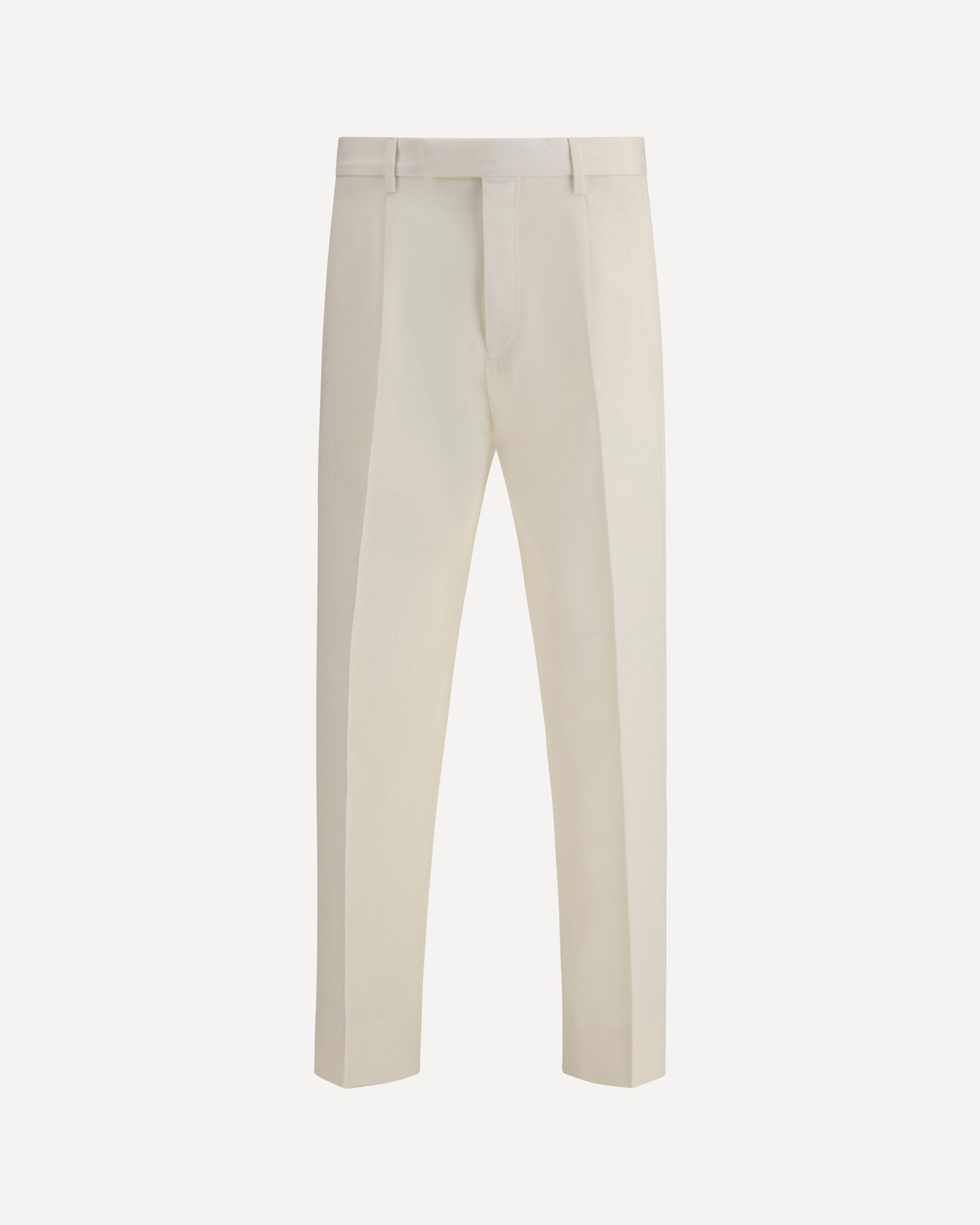 Zegna's cotton and wool tailored Pants combine elegance and quality materials for a refined and comfortable garment. They feature a front zipper and button closure, as well as belt loops to customize the fit. Completing the design are two side welt pockets and two back pockets for a classic, functional look ideal for formal or professional occasions. DETAILS - Sku: UGI04A2TP45_N01 - Season: AW25 - Fit: Regular - Composition: GENERAL 57% Cotton 43% Wool - MADE IN ROMANIA