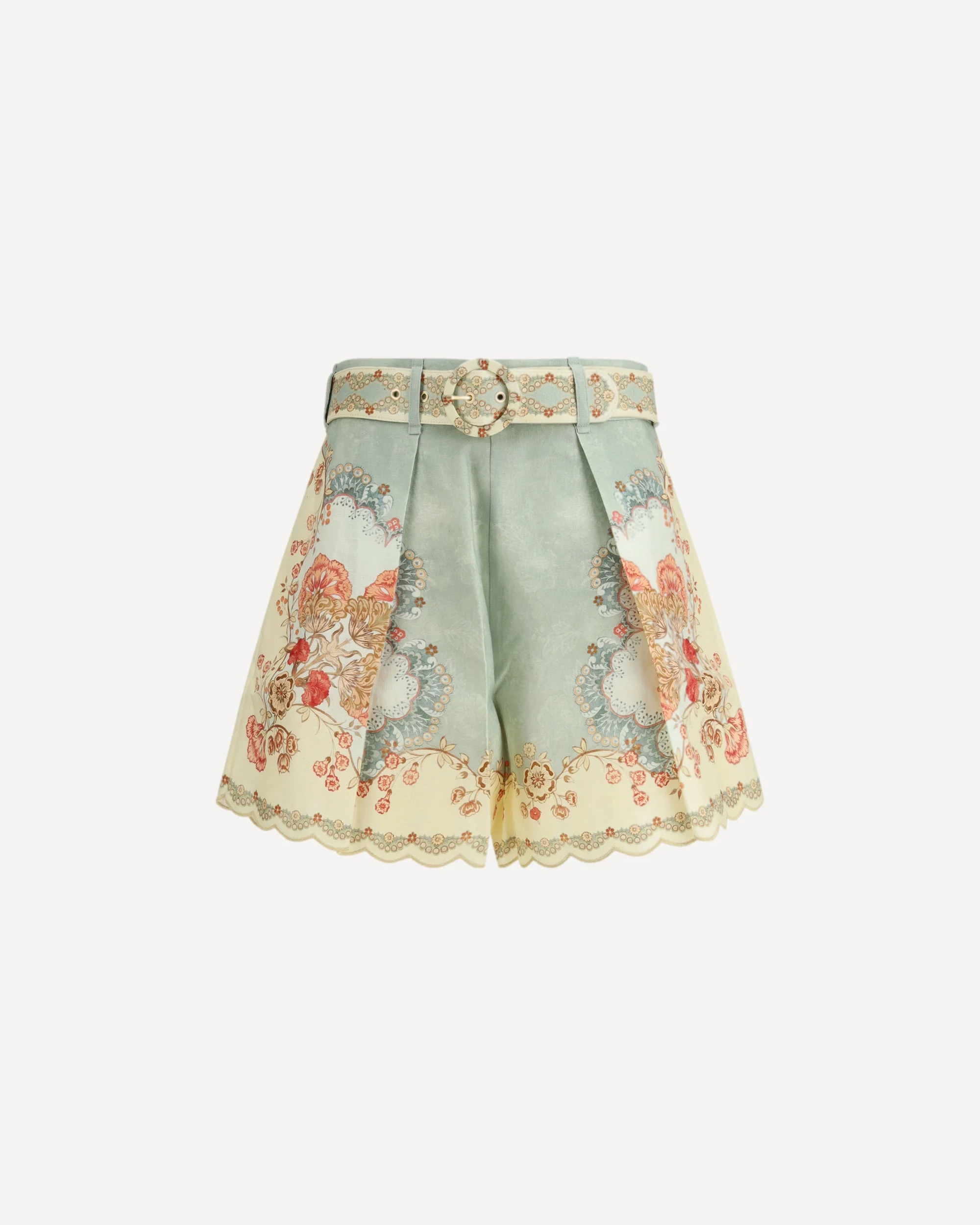 The Daylight Tuck Linen Shorts by Zimmermann deliver effortless summer elegance. Crafted from linen, they feature a high-rise waist that flatters the silhouette and a back zip closure for a clean finish. Side welt pockets provide discreet functionality, while the matching linen belt with a covered buckle adds a refined finishing touch. DETAILS - Sku: 4558ARS263_WPFM - Season: SS26 - Fit: Regular - Composition: GENERAL 100% Linen - MADE IN CHINA