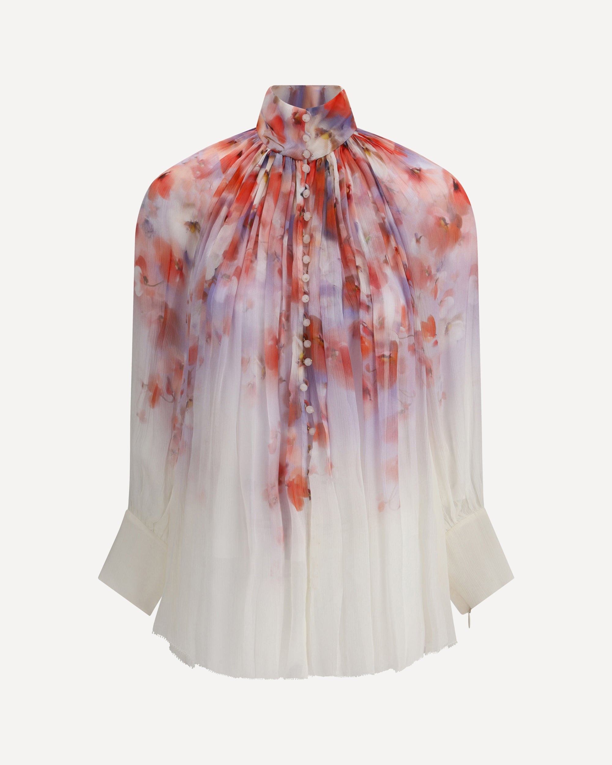 Zimmermann's Crush Blouse is an elegant, lightweight piece featuring an eye-catching all-over floral print. The button-front closure and semi-sheer design lend a delicate allure, while the draped details add movement and femininity to the style. DETAILS - Sku: 5768TR251_SCAFLO - Season: AW25 - Fit: Regular - Composition: GENERAL 100% Viscose - MADE IN CHINA