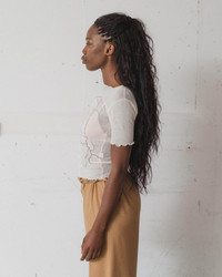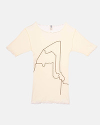 Product Details Organic cotton tee Exposed seams Lettuce edge at neckline and hems Undyed Model wears size S and is 173cm The embroidery represents the disputed border between Maine in the US and New Brunswick in the UK that led to the Aroostook War (1838-39), also known as the "Pork and Beans War," a conflict with no casualties. 100% Organic Cotton Made in Portugal Fiber origin – USA Spun in India Knitted in Portugal Sewn in Portugal Material Organic cotton Origin: Brazil, India, Egypt Certificates: GOTS, Oeko-Tex, OCS 100 - Cotton is a natural seed fiber. - It is durable, breathable, absorbent, and soft. Cotton is ideal for dyeing and printing. The material is also biodegradable and hypoallergenic. - Nearly all cotton is grown in rotation. Rotation crops help with pest management and soil structure. - Cotton stalks in most of the world are utilised almost entirely and seeds are essentially never wasted. - Baserange sources organic cotton, as we want to ensure that no harmful chemicals are used in the production process, water consumption is controlled, water is not contaminated and workers' rights are also preserved. - Organic agriculture uses agronomic, biological, and mechanical techniques instead of synthetic methods. - Organic cotton supports good soil health and ecosystems and is not harmful to human health or the environment. No pesticides or fertilizers are used. Most of the organic cotton we use is also rain-fed and doesn’t require much irrigation.
