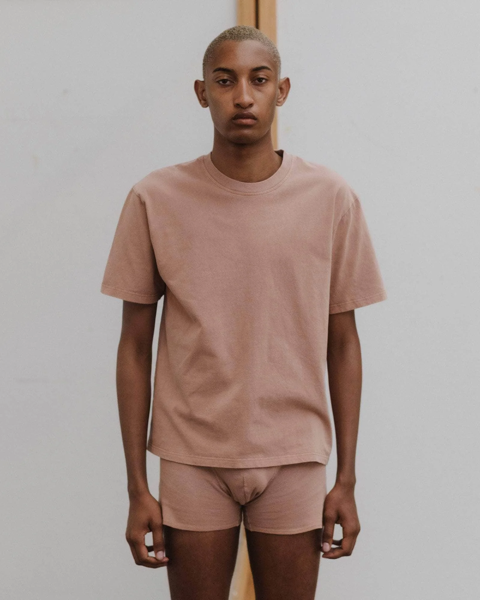 Product Details No return & exchange on sale products Regenerative cotton tee Crewneck 50% Regenerative Cotton 50% Recycled Cotton Made in Portugal Model wears a size S Naturally dyed with hematite - Due to the nature of dye method variation of color is possible. Hematite, also known as blood stone, is an iron oxide mineral found in soils that creates shades of red. The red pigment it creates was one of the oldest sources of dye used for writing and dyeing. Today it is used to create gems for jewellery, in medical equipment and by the shipping industry. Material Regenerative Fabrics Origin: Australia Certificates: Oeko-Tex - Regenerative agriculture is the process of working with nature to restore degraded soils using a closed-loop system. - This is done through various methods such as doing crop rotation to introduce nutrients to the soil, low tilling of the ground like digging the soil to store more carbon dioxide and using compost. - The practices implemented are dependent on the local ecosystem. There are no fixed practices, rather it is about adopting holistic principles of farming that improve soil health. - It increases biodiversity, makes the soil more flood and drought resilient, has larger yields and enhances the habitat for wildlife. - Regenerative agriculture also improves the cleanliness of water and lessens pollution, as no pesticides are used. Increased nutrient levels in the soil also help store more carbon dioxide.