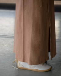 Product Details Deadstock organic cotton rib wrap skirt Model wears a size S 100% Organic Cotton Made in Portugal Fiber origin - Sudan Spun in Portugal Woven in Portugal Sewn in Portugal Material Organic cotton Origin: Brazil, India, Egypt Certificates: GOTS, Oeko-Tex, OCS 100 - Cotton is a natural seed fiber. - It is durable, breathable, absorbent, and soft. Cotton is ideal for dyeing and printing. The material is also biodegradable and hypoallergenic. - Nearly all cotton is grown in rotation, but conventional cotton generally has a higher environmental impact. - Baserange sources organic cotton, as we want to ensure that no harmful chemicals are used in the production process, water consumption is controlled, water is not contaminated and workers' rights are also preserved. - Organic agriculture uses agronomic, biological, and mechanical techniques instead of synthetic chemicals. - Organic cotton supports good soil health and ecosystems and is not harmful to human health or the environment. No pesticides or fertilizers are used. Most of the organic cotton we use is also rain-fed and doesn’t require much irrigation.