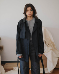 Product Details Technical cotton jacket Raglan sleeves Belt loops with self belt at waist Pockets on both sides Pocket inside Model wears a size M and is 171cm 100% Organic Cotton Made in Portugal Fiber origin - Turkiye Spun in Pakistan Woven in Pakistan Sewn in Portugal This novelty cotton, with a paper-like crisp quality, goes through a process in which the fibers are swollen so that the volume of the fibers increase, which in turn shrinks the fabric. This treatment increases the density of the fabric. Material Organic cotton Origin: Brazil, India, Egypt Certificates: GOTS, Oeko-Tex, OCS 100 - Cotton is a natural seed fiber. - It is durable, breathable, absorbent, and soft. Cotton is ideal for dyeing and printing. The material is also biodegradable and hypoallergenic. - Nearly all cotton is grown in rotation. Rotation crops help with pest management and soil structure. - Cotton stalks in most of the world are utilised almost entirely and seeds are essentially never wasted. - Baserange sources organic cotton, as we want to ensure that no harmful chemicals are used in the production process, water consumption is controlled, water is not contaminated and workers' rights are also preserved. - Organic agriculture uses agronomic, biological, and mechanical techniques instead of synthetic methods. - Organic cotton supports good soil health and ecosystems and is not harmful to human health or the environment. No pesticides or fertilizers are used. Most of the organic cotton we use is also rain-fed and doesn’t require much irrigation.