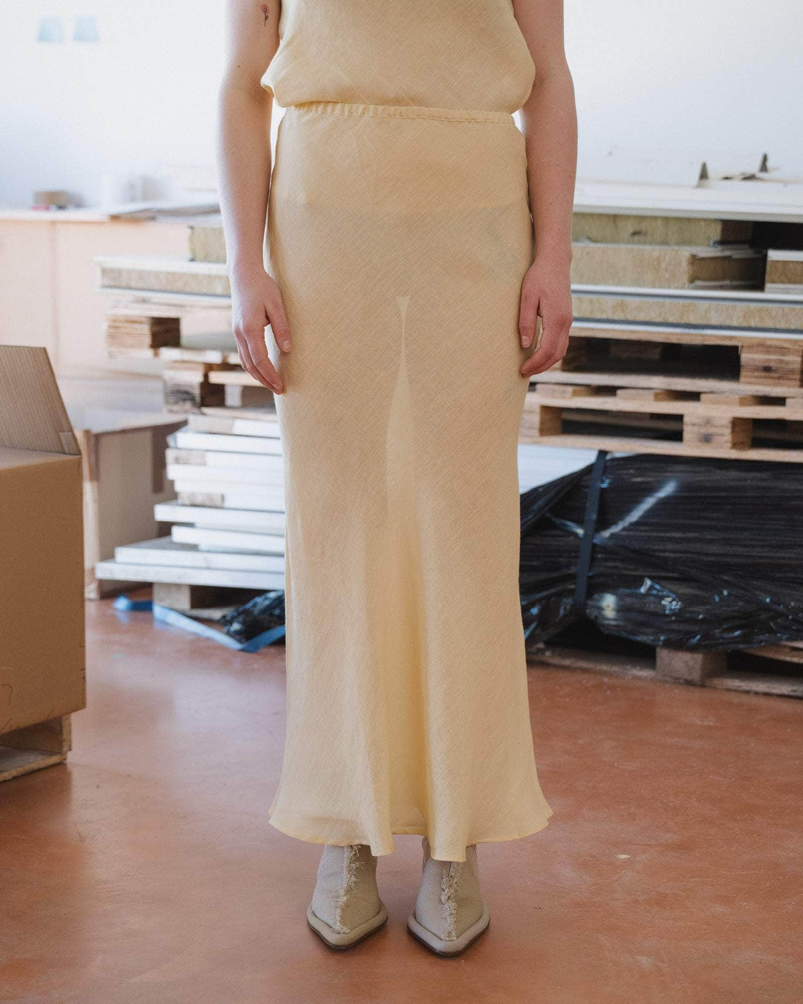 Product Details Sheer linen skirt Thin elastic waistband Bias cut Model wears a size S and is 167cm 100% Linen Made in Turkiye Fiber origin - France/ Belgium Spun in China Woven in Turkiye Sewn in Turkiye Material Linen Origin: France, Belgium Certificates: Oeko-Tex - Linen is a bast fiber. - Linen requires no irrigation and can be grown even in poor soil. It requires no chemicals. - Linen is grown in rotation, nourishing the soil for other crops. It is also always non-GMO. - A breathable fabric, linen is strong and absorbent. It’s more durable and dries faster than cotton. Its naturally cooling properties make it an appealing summer wear and layering option. - Linen production is almost zero waste and leftovers like flax dust can be used for insulation. The seeds can provide oil and the by-products of linen production can be processed into a pulp. - As linen fabric is said to get softer with age and each wash, having and caring for a linen garment for a long time is covetable.