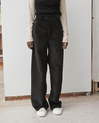 Product Details Corduroy pant Extra high-rise Two front pockets Belt loops at waistband Button closure 100% Cotton Made in Portugal Model wears a size S Material Cotton Origin: Egypt Certificates: Oeko-Tex - Cotton is a natural seed fiber. - It is durable, breathable, absorbent, and soft. Cotton is ideal for dyeing and printing. The material is also biodegradable and hypoallergenic. - This fabric is made with conventional cotton, as the fiber length of organic cotton is not long enough to achieve the quality of this fabric.