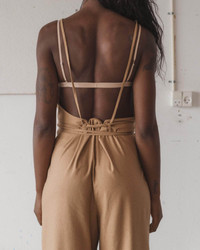 Product Details Wild silk jumpsuit Open back Tie closure Worn multiple ways True to size Model wears size S and is 173cm 100% Silk Made in Turkiye Fiber origin – China Spun in China Woven in Turkiye Sewn in Turkiye Material Wild Silk Origin: China Certificates: Oeko-Tex - Wild silk is made by silkworms that live in the wild. Wild silkworms feed on and live in trees. - Wild silk is a lot more textured than regular silk. - Due to its short fiber length, wild silk is more comparable to wool. - It has the same positive attributes as silk. - The process of making wild silk is also known as non-violent, which is when the silk is processed without killing the silkworm. Once the moth leaves its cocoon, the silk is collected and processed into yarn.