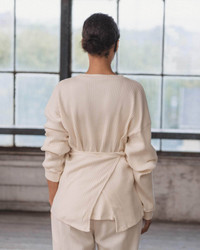Product Details Ribbed cotton jersey long sleeve wrap top Crewneck Dropped shoulder Worn multiple ways Oversized fit, consider sizing down Model wears a size S and is 167cm 100% Organic Cotton Made in Portugal Fiber origin – Turkiye Spun in Portugal Woven in Portugal Sewn in Portugal Material Organic cotton Origin: Brazil, India, Egypt Certificates: GOTS, Oeko-Tex, OCS 100 - Cotton is a natural seed fiber. - It is durable, breathable, absorbent, and soft. Cotton is ideal for dyeing and printing. The material is also biodegradable and hypoallergenic. - Nearly all cotton is grown in rotation. Rotation crops help with pest management and soil structure. - Cotton stalks in most of the world are utilised almost entirely and seeds are essentially never wasted. - Baserange sources organic cotton, as we want to ensure that no harmful chemicals are used in the production process, water consumption is controlled, water is not contaminated and workers' rights are also preserved. - Organic agriculture uses agronomic, biological, and mechanical techniques instead of synthetic methods. - Organic cotton supports good soil health and ecosystems and is not harmful to human health or the environment. No pesticides or fertilizers are used. Most of the organic cotton we use is also rain-fed and doesn’t require much irrigation.