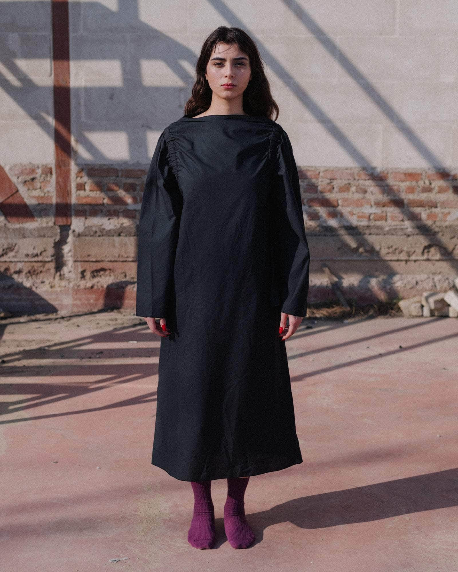 Product Details Organic cotton poplin dress Boat neck Elastic gathers at armholes 100% Organic Cotton Made in Turkiye Model wears a size S Material Organic cotton Origin: Brazil, India, Egypt Certificates: GOTS, Oeko-Tex, OCS 100 - Cotton is a natural seed fiber. - It is durable, breathable, absorbent, and soft. Cotton is ideal for dyeing and printing. The material is also biodegradable and hypoallergenic. - Nearly all cotton is grown in rotation. Rotation crops help with pest management and soil structure. - Cotton stalks in most of the world are utilised almost entirely and seeds are essentially never wasted. - Baserange sources organic cotton, as we want to ensure that no harmful chemicals are used in the production process, water consumption is controlled, water is not contaminated and workers' rights are also preserved. - Organic agriculture uses agronomic, biological, and mechanical techniques instead of synthetic methods. - Organic cotton supports good soil health and ecosystems and is not harmful to human health or the environment. No pesticides or fertilizers are used. Most of the organic cotton we use is also rain-fed and doesn’t require much irrigation.