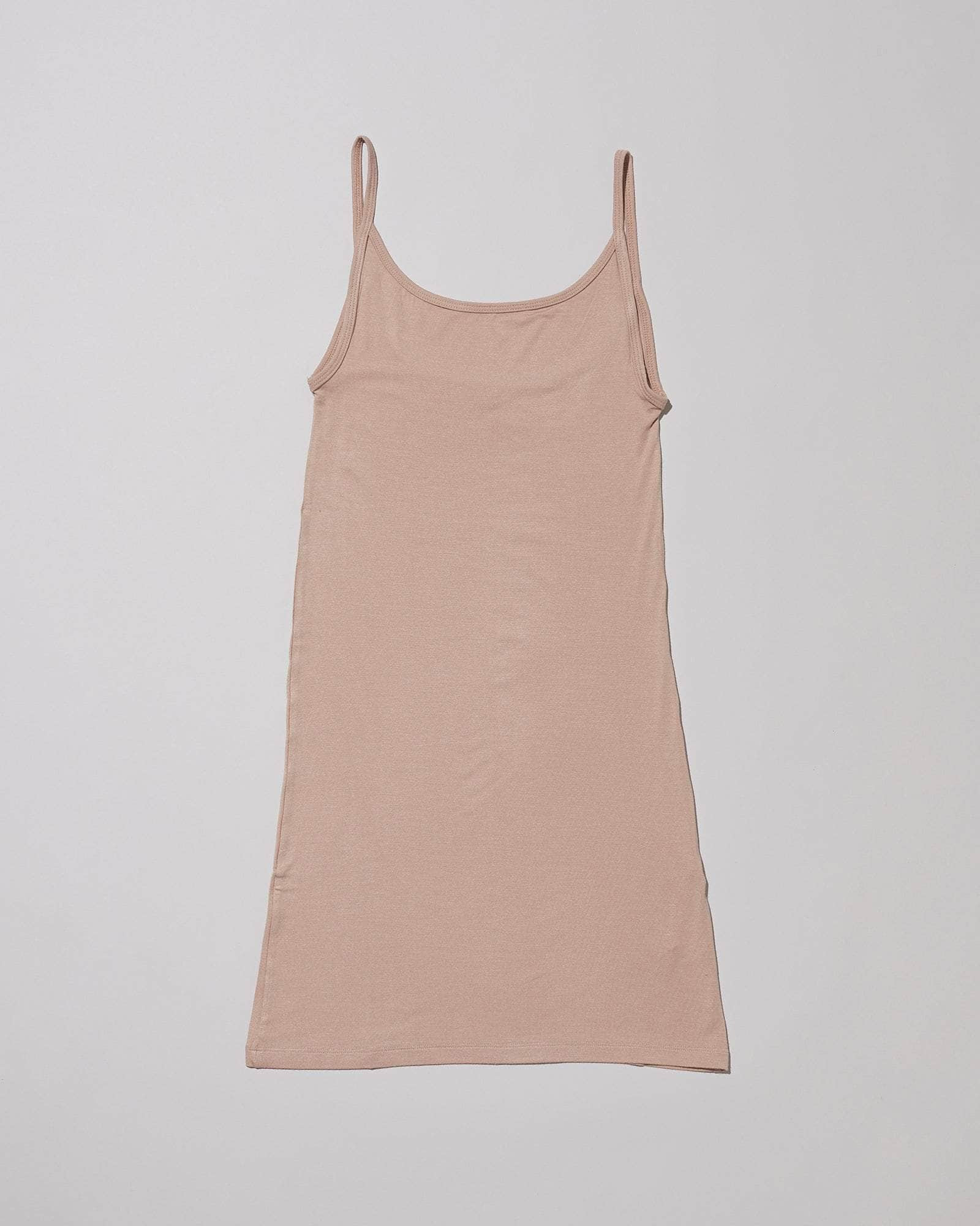 Product Details Bamboo lyocell slip dress Thin shoulder straps Scoop neck front and back Model wears a size S 93% Bamboo Lyocell 7% Elastane Made in Portugal Fiber origin – China Spun in Portugal/Brazil Knitted in Portugal Sewn in Portugal Material Lyocell Origin: China Certificates: FSC - Lyocell is a manmade fiber made of natural regenerated cellulose. - The lyocell process eliminates toxic chemicals and reactions and reduces air and water emissions. - Lyocell is made from traceable wood pulp harvested from FSC-certified farms. The farms have been established on land unsuitable for food crops or grazing. - Lyocell is made of eucalyptus or bamboo trees that don’t require irrigation or pesticides and grow fast. - Lyocell fiber production itself is more environmentally friendly than cotton due to its closed-loop process. This means that up to 99% of the water and solvents used are reused. - Manufacturing lyocell does not require bleach. - Lyocell fiber is stronger than viscose both when dry and wet. - Sea cell is a similar fiber made from seaweed and sea algae with therapeutic qualities.
