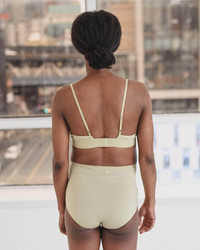 Product Details Bamboo lyocell bra Darts at chest Thick elastic trim at hem Thin adjustable straps Self lined Supportive for medium and small bust Model wears a size S 93% Bamboo Lyocell 7% Elastane Made in Portugal Fiber origin – China Spun in Portugal/Brazil Knitted in Portugal Sewn in Portugal