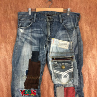 Levis Strauss Unique Custom Patchwork Denim Pants