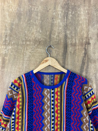 Coloured Cable Knit Sweater - Navajo Multicolor Knit Sweaters Like Coogi #1486