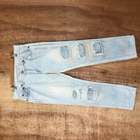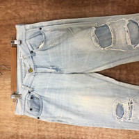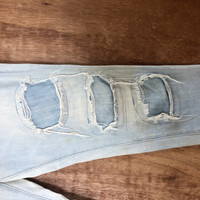 Distressed Denim - Distressed Patchwork Trash Denim Pants Jeans