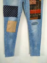 Japanese Brand - Custom Lowrys Farm Jeans with Sashiko Patchwork