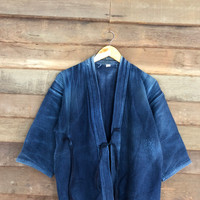 Kimono Japan Dragon - Kimono Noragi Cotton Thick Jacket Blue