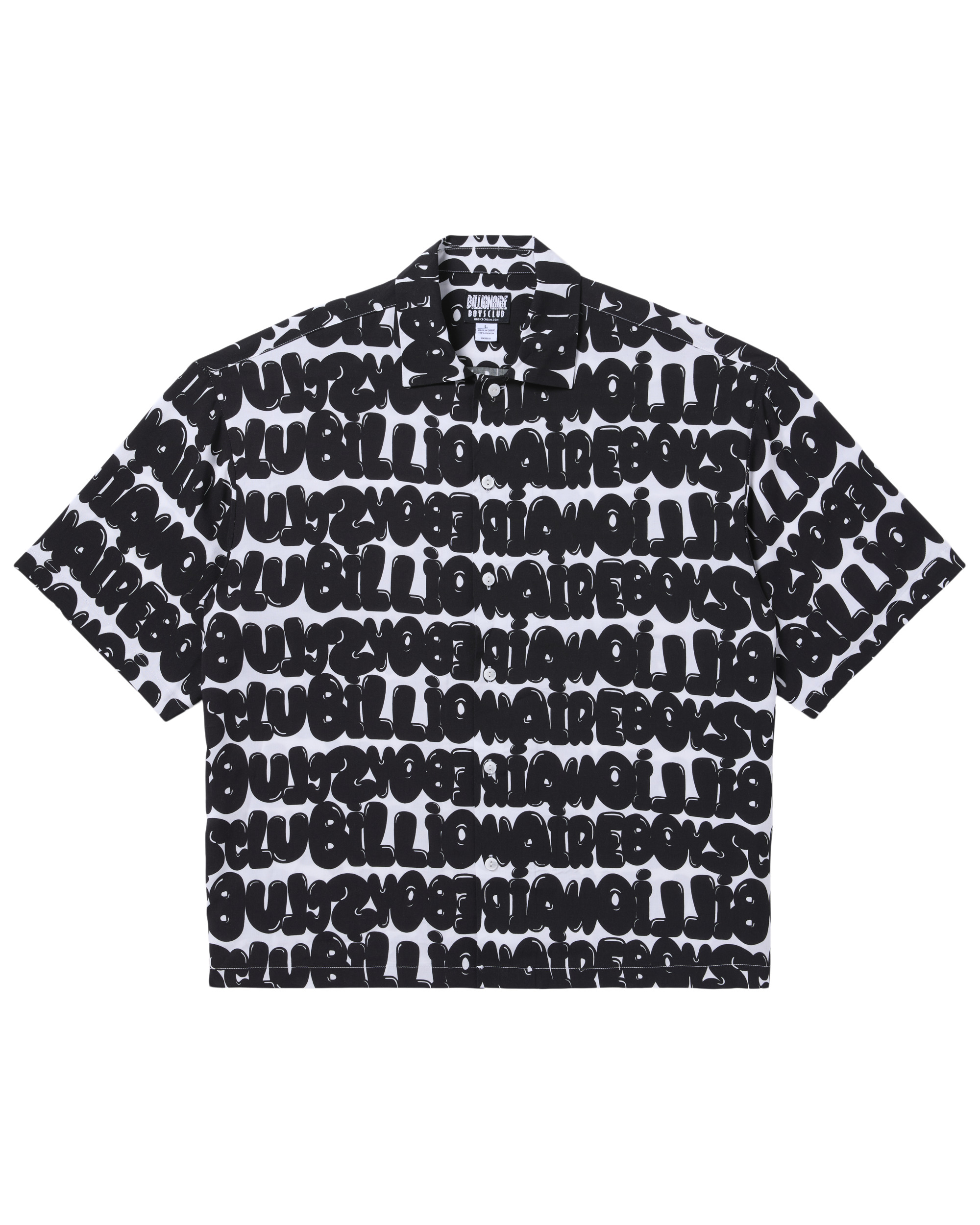 Woven button-down shirt featuring a repeat print of Billionaire Boys Club throughout. - White - Repeat print of Billionaire Boys Club throughout - 100% Rayon