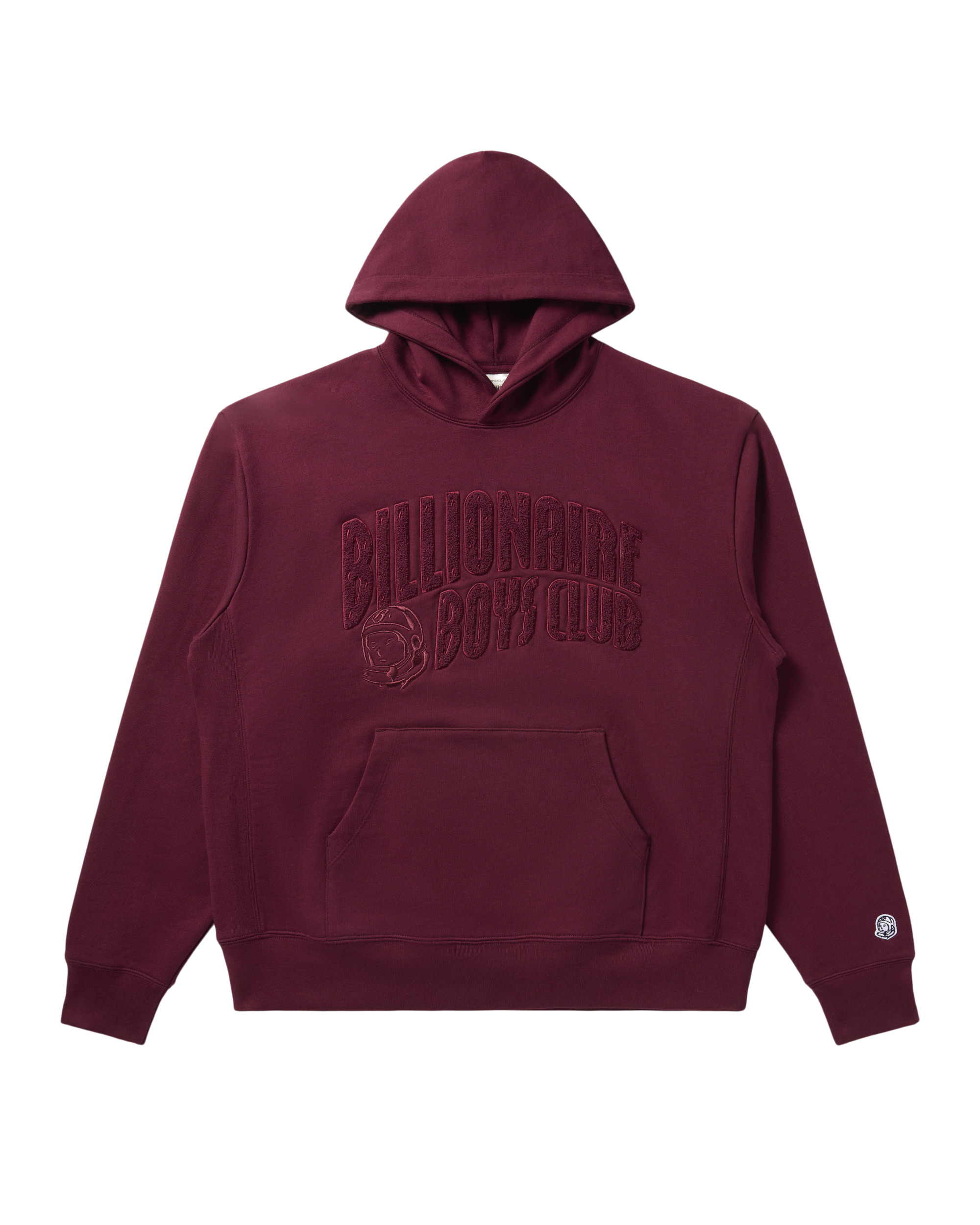 The Chenille Logo Hoodie features a chenille embroidered patch of the Arch logo at the front and the Standing Astronaut logo printed on the back neck. - Burgundy - Embroidered patch of the Arch logo on the front - Standing Astronaut on the back neck - 100% Cotton