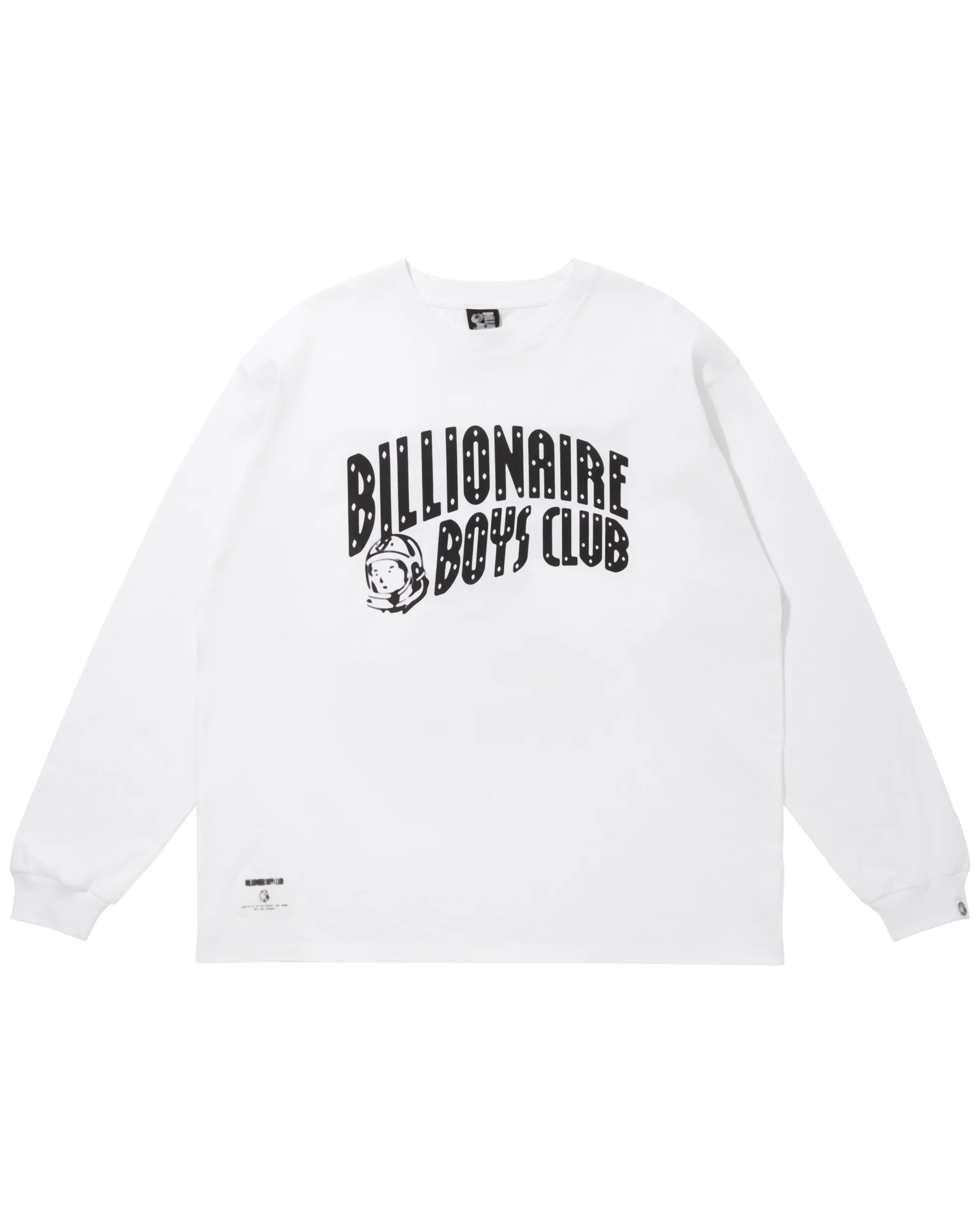Long sleeve tee with Billionaire Boys Club's signature arch logo and helmet graphic on the front and the mantra on the back. - White - Arch logo on front - Mantra on the back - 100% Cotton