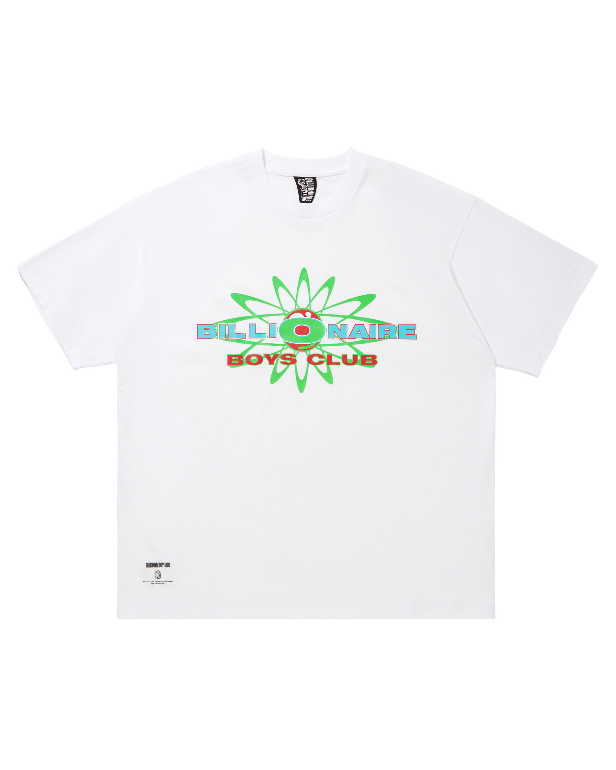 This T-Shirt features Billionaire Boys Club graphics by Hiroshi Tanaka, designer of BIAS DOGS and founder of GATHERING INC. The front features a colorful atomic-inspired motif with the Billionaire Boys Club logo. - White - Graphic by Hiroshi Tanaka (BIAS DOGS / GATHERING INC.) - Screen print Billionaire Boys Club Atomic Logo on the chest - Short sleeves - 100% Cotton
