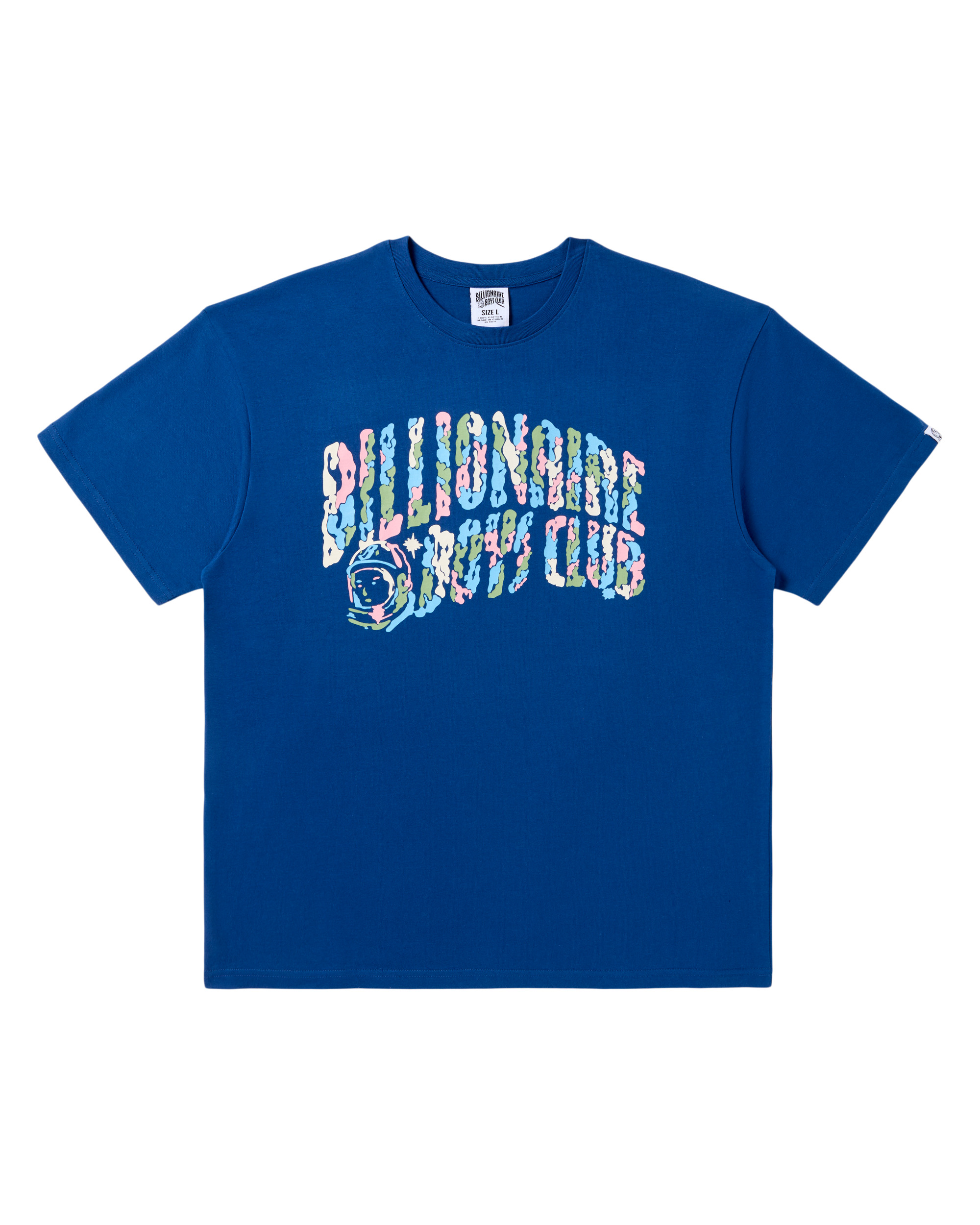 Short-sleeve tee featuring the iconic Billionaire Boys Club arch logo filled with a multicolor floral pattern, finished with a standing astronaut graphic at the back neck. - Navy - Screen-printed floral arch logo with astronaut helmet detail at front - Screen-printed standing astronaut logo at back neck - Crew neckline - Short sleeves - 100% Cotton