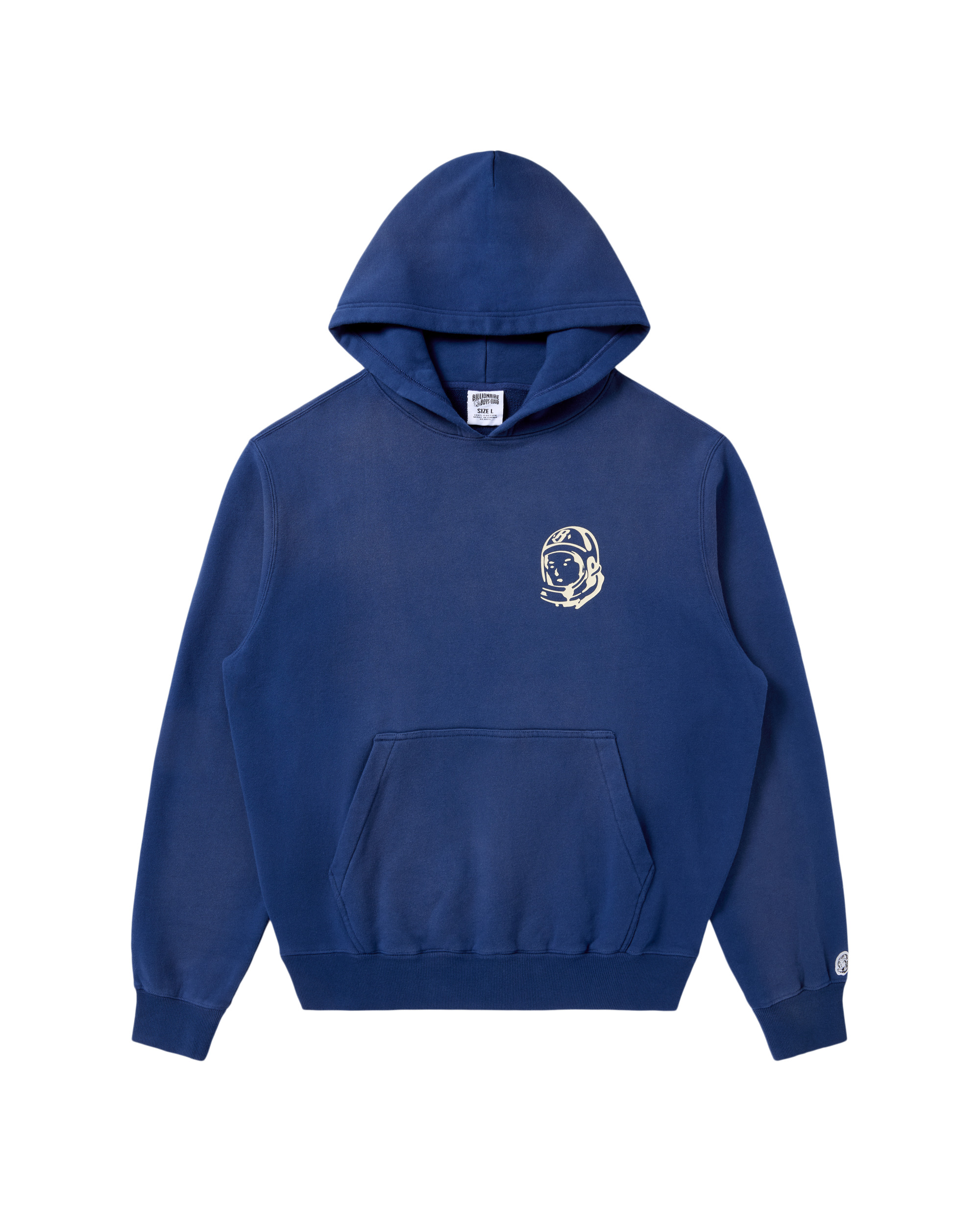 Pullover hoodie crafted from premium cotton fleece and features a small helmet head logo print at the chest with a large Rocketman graphic across the back. Designed with a front kangaroo pocket, ribbed cuffs and hem. - Navy - Helmet head chest graphic - Rocketman back graphic - Kangaroo pocket - Ribbed cuffs and hem - 100% Cotton