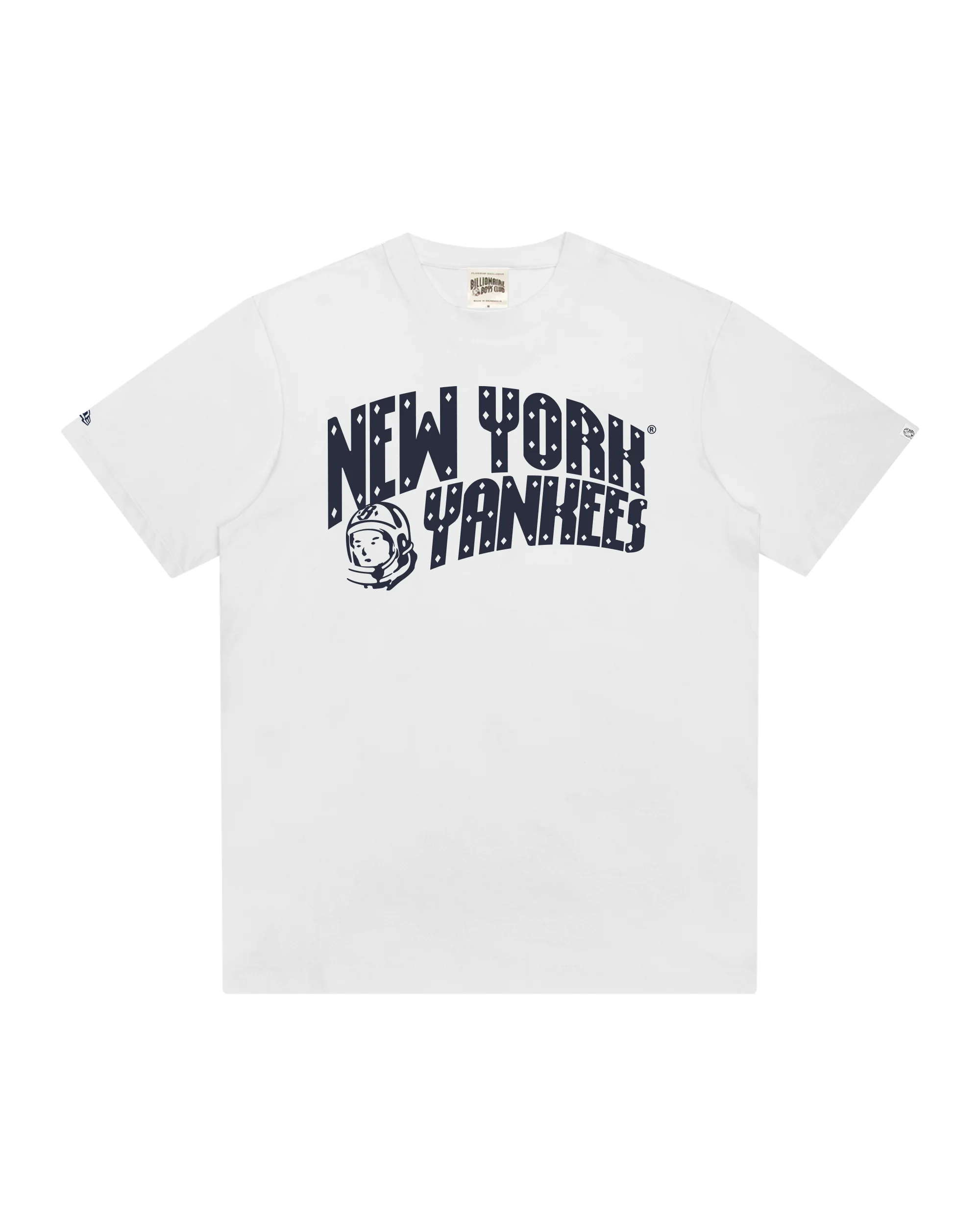 NY Yankees Champion Tee featuring a screen-printed New York Yankees graphic at the chest and a World Series trophy graphic with championship years at the back. - White - Screen-printed Yankees graphic at front - Screen-printed trophy and championship years at back - Crew neckline - 100% Cotton