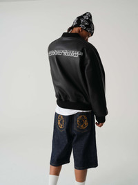 Crafted with 100% cow leather, it features an embroidered Astro helmet at front and the Billionaire Boys Club logo at the back. - Black - Regular Fit - Quilted lining - Elasticated waistband and cuffs - Embroidered Astro helmet patch at front - Embroidered Billionaire Boys Club logo at the back - Two front pockets - Shell: 100% Cow Leather; Lining & Filling: 100% Polyester