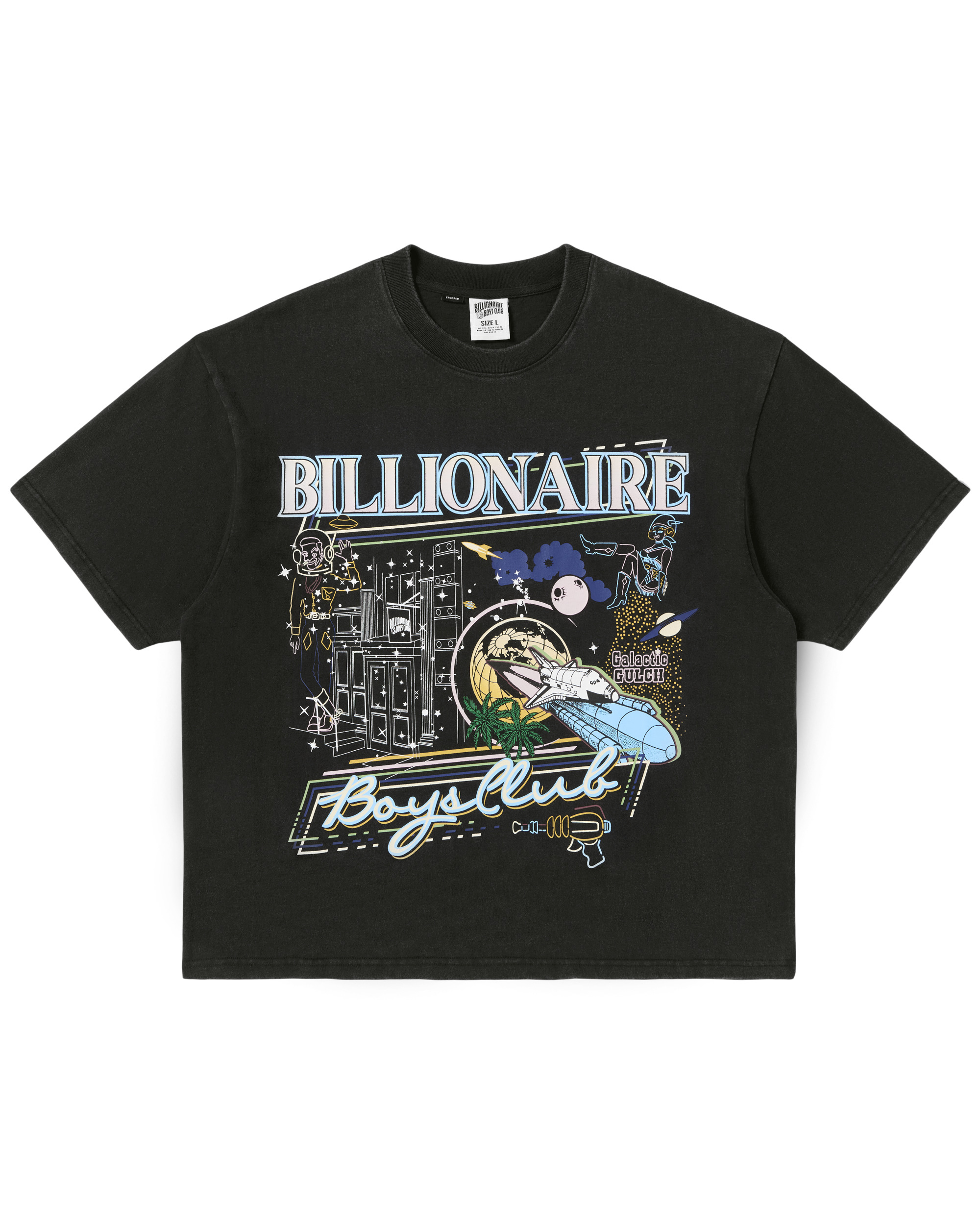 Tee screen-printed with a galactic-inspired Billionaire Boys Club graphic at the front and astronaut logo at the back neck. - Black - Cropped, boxy fit - Screen-printed galactic Billionaire Boys Club graphic at front - Screen-printed astronaut logo at back neck - Crew neckline - Short sleeves - 100% Cotton