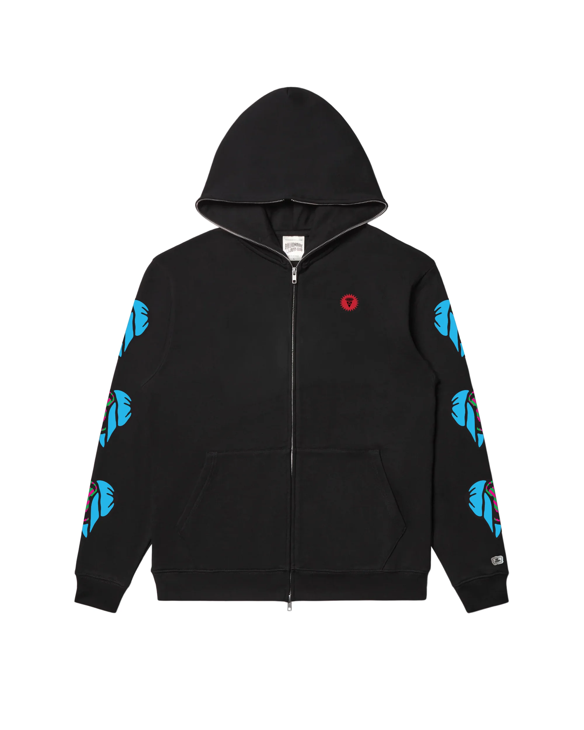 The Cherry Gang Fz Hoodie features the Ic signet printed on the front left chest, the Cherry Boy logo on the sleeves, and the Icecream logo paired with a large cherry graphic on the back. - Black - Screen-printed graphics on the front, sleeves, and back - 100% Cotton