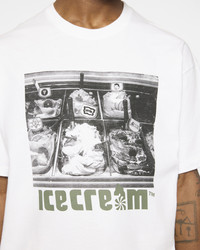 The Choices Tee features a large monochrome photograph of an ice cream display case. The graphic is finished with a green Icecream logo underneath and the IC signet on the back. - White - Screen-printed graphics on the front and back - 100% Cotton