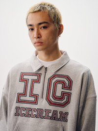 This Collegiate Quarter Zip Sweatshirt presents a half zip on the collar and the ICECREAM twill applique on the chest. - Heather Grey - Regular Fit - Half zip on the collar - ICECREAM twill applique on the chest - Metal quarter zip on the collar - 100% Cotton