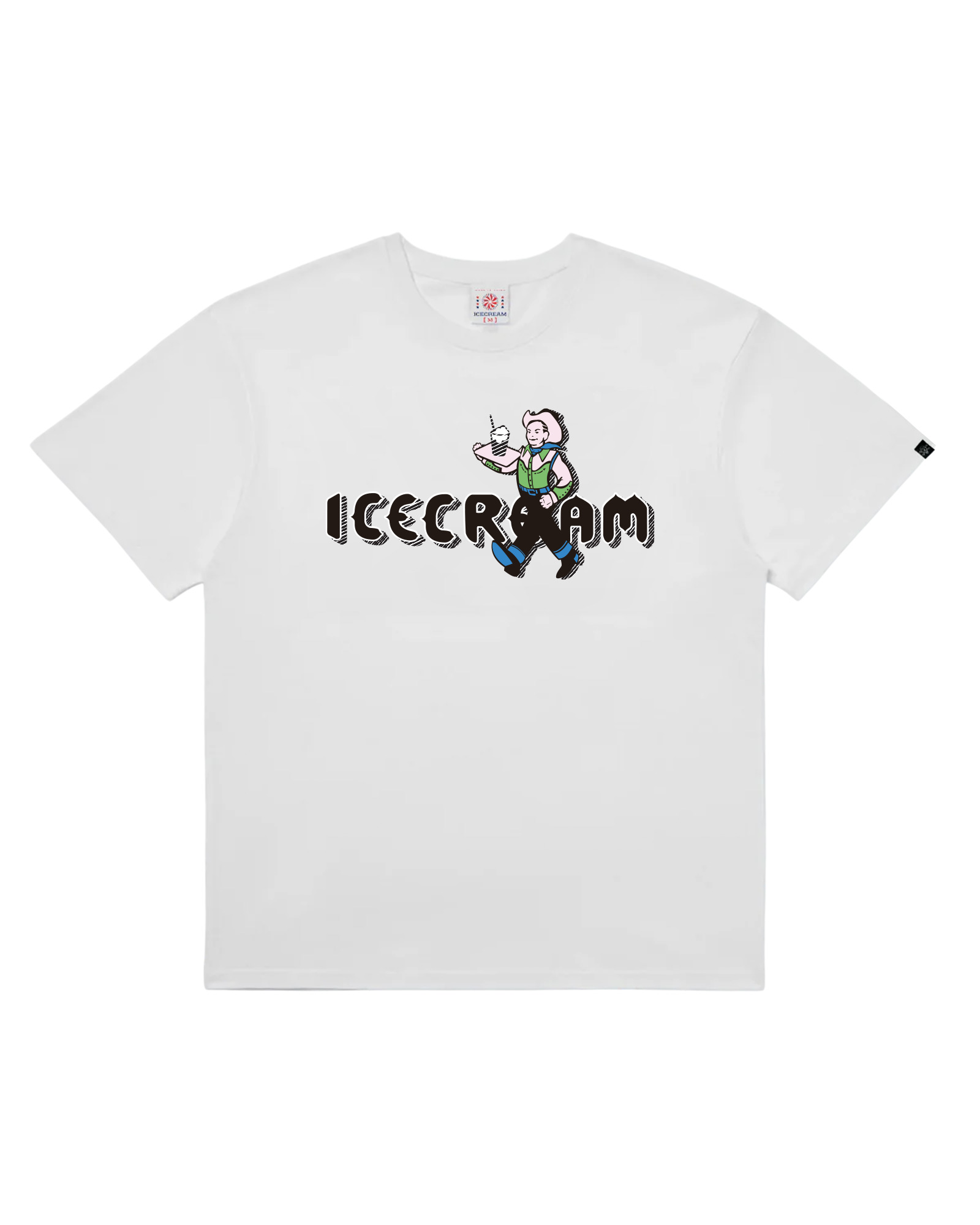 The Cowpoke Tee features the Icecream logo accompanied by a cowboy graphic on the front and another cowboy graphic on the back. - White - Screen-printed graphic on the front and back - 100% Cotton