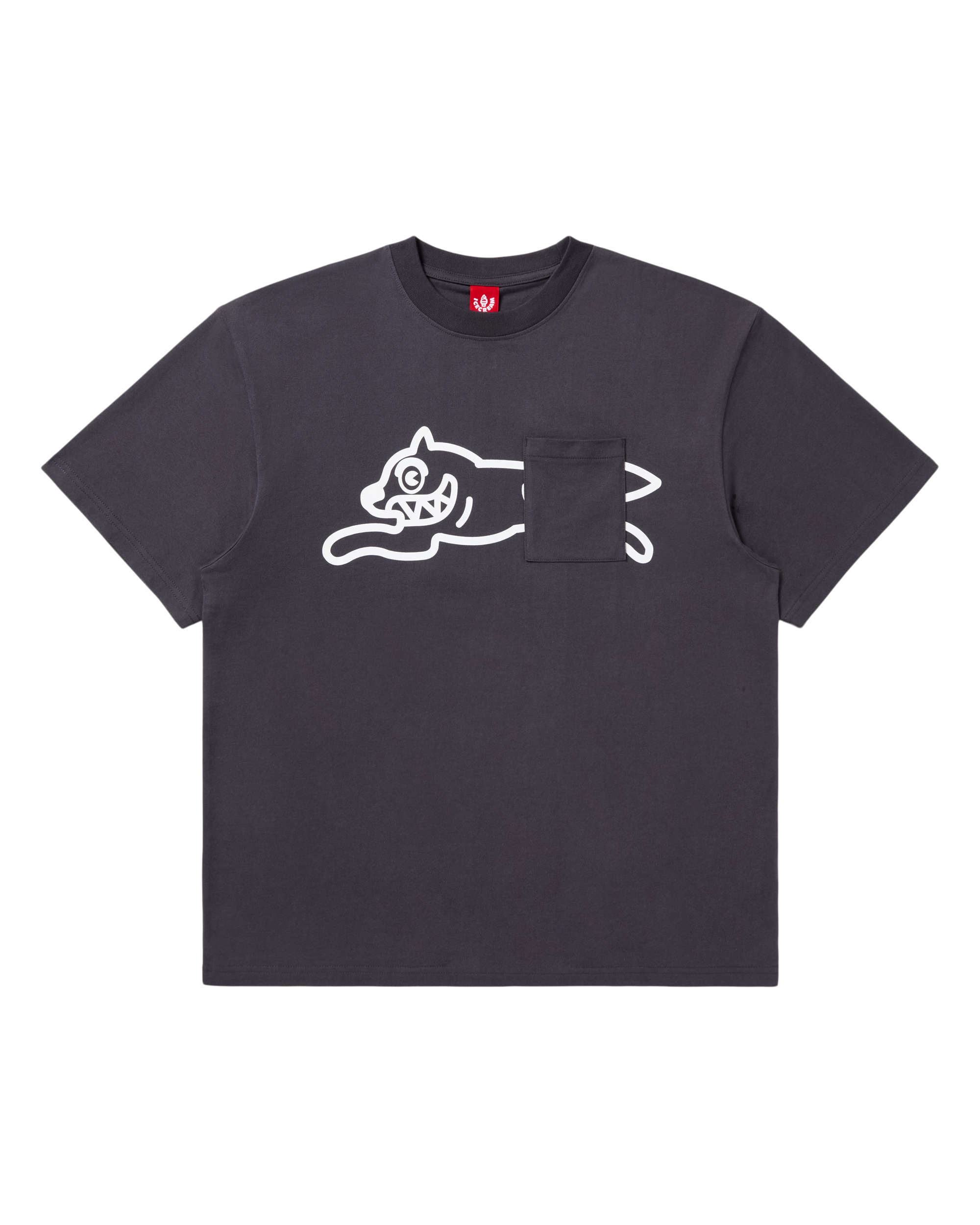 Classic short-sleeve tee featuring ICECREAM’s iconic Running Dog graphic with a functional chest pocket. - Charcoal Black - Oversized fit - Screen-printed Running Dog graphic across chest - Patch pocket at left chest - Crewneck collar - Short sleeves - 100% Cotton