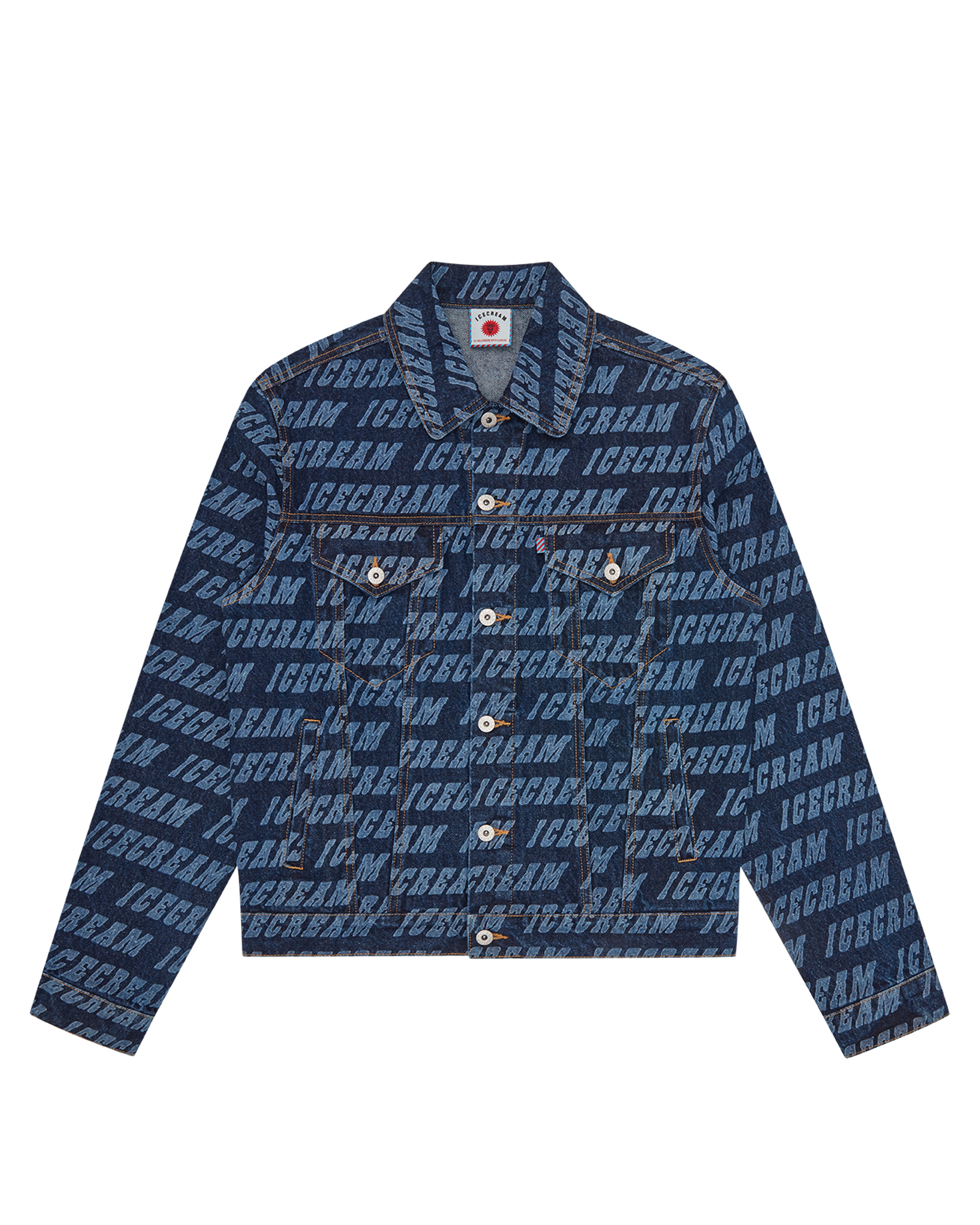 This Repeat Logo Denim Trucker Jacket presents an all-over ICECREAM repeated graphic on the body. Coordinated denim and bag available. - Indigo - Regular fit - All-over laser printed ICECREAM logos on the body - Branded ICECREAM leather patch on the back - Branded buttons - 100% Cotton