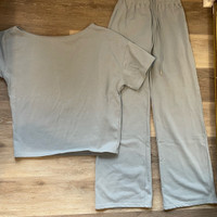 Terry Pant Set from Nova bae. Super cute and comfy. Off Shoulder T-Shirt and Pant Set Stretch Regular 32" Inseam Elastic Waistband Self: 80% Cotton 20% Polyester