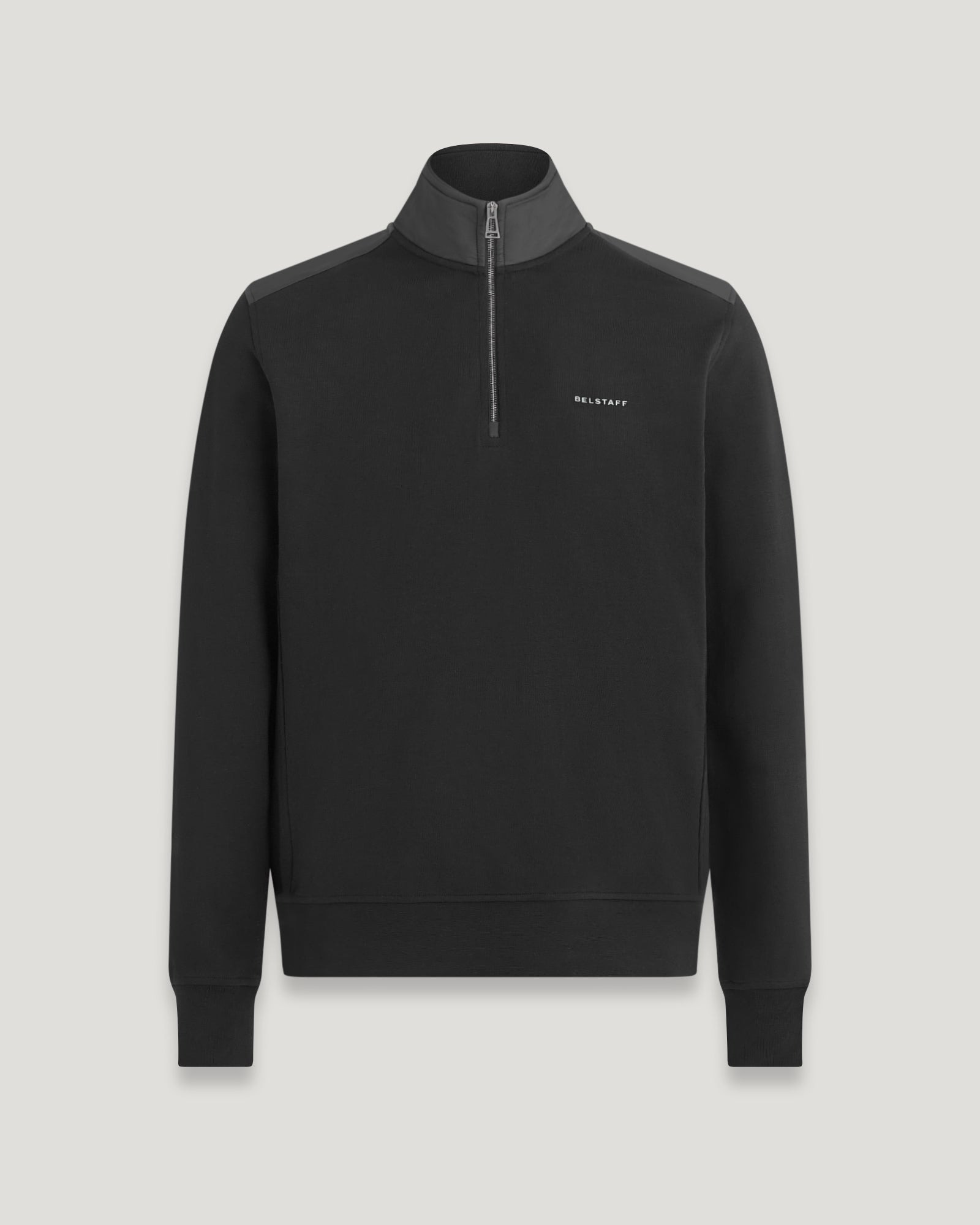 The Alloy quarter zip sweatshirt in Black is expertly crafted from compact, double-faced sweatshirt fabric with nylon panelling at the neck. The Black colour ensures a modern finish. DETAILS - A compact double face knitted interlock sweatshirt fabric with technical shell panelling - Technical shoulder seam detail - Gunmetal hardware - Silicone Belstaff logo on left chest - Centre front quarter length zip - Recycled polyester - By choosing our cotton products, youare supporting Belstaff`s investment in Better Cottonas mission. This product is sourced via a system of mass balance and therefore may not contain Better Cotton. Learn more at bettercotton.org/learnmore - Body: 100% Cotton - Rib: 98% Cotton, 2% Elastane - Woven: 100% Polyester - Product ref: 105238BLACK SIZE AND FIT - Cut for a regular fit - Model wears a size L - Model measures: Height: 6'1", Chest: 39", Waist: 32a