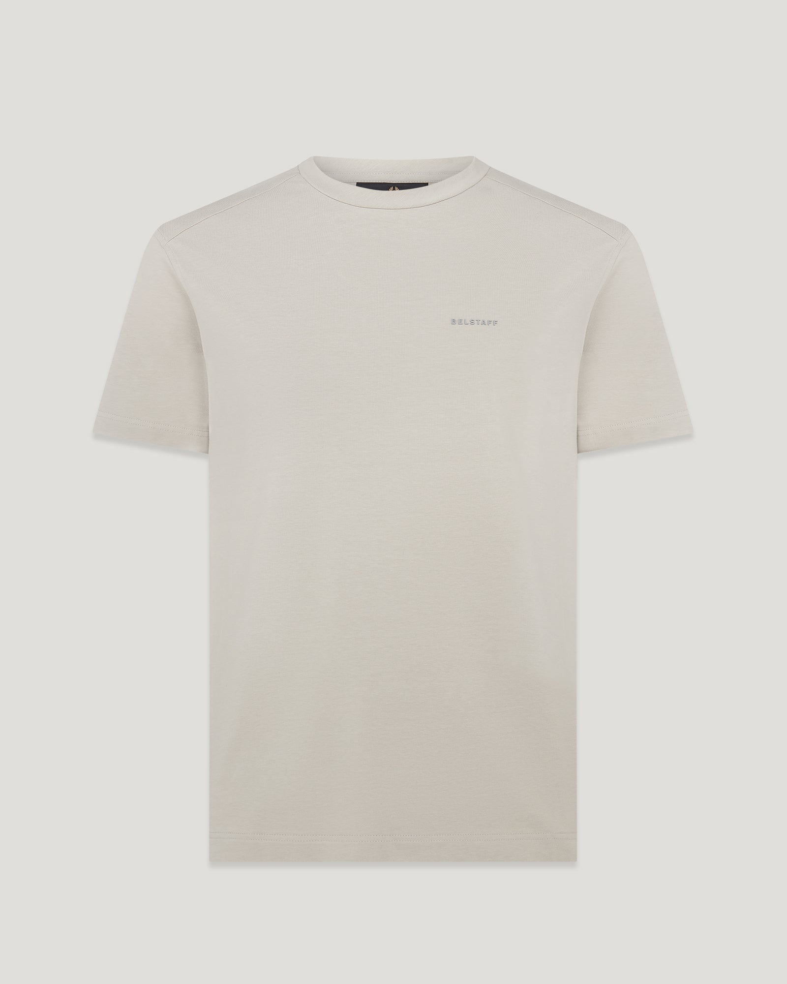 The Alloy T-shirt in Cement Grey is an easy staple, cut for a slim fit from high thread count stretch cotton jersey. The refined logo at the chest is a modern, minimal Belstaff finish. DETAILS - Cotton elastane jersey - Crew neck short sleeve - Chest print branding - BCI Cotton - Body: 96% Cotton, 4% Elastane - Product ref: 105237CMTGY SIZE AND FIT - Cut for a regular fit