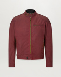 Stay cool but protected in the Ariel Jacket with its breathable, waterproof membrane while British Millerain 8oz, Racing Red technical waxed cotton still offers protection from the elements. Oil resistant corduroy collar and cuff faces and twin needle topstitching make it practical and hard-wearing with an unwaxed cotton facing to protect clothing. Safety features include D3O shoulder and elbow armour, and stud fastenings allow quick connection to Belstaff motorcycle trousers. DETAILS - 8oz. British Millerain technical waxed cotton - Breathable, waterproof membrane - Twin needle topstitching for strength - Oil-resistant corduroy collar and cuff facings - Signature check lining - Unwaxed cotton facing to protect clothing - Underarm metal airvents - Adjustable snap and press stud fastening waist - Zip shield with rain gutter - Silicone central snap to protect the tank - Internal zipped pocket - Stud collar - Internal zipped back protector pocket - Protection reinforcement - Stud fastening trouser loops - 65% polyester, 35% cotton - Certification: AA - Protection: D3O Tri-ventilation level 1 (Elbow/Shoulder) - Product ref: 104970RCGRD SIZE AND FIT - Cut for a regular fit - Model wears a size M - Model measures: Height: 6'1", Chest: 40", Waist: 32â