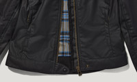 Made from British Millerain 8oz. technical waxed cotton with a breathable waterproof membrane, our women’s Bamburgh motorcycle jacket has D3O shoulder and elbow armour and an internal pocket for optional back protection. Twin needle topstitching and an oil-resistant corduroy collar and cuffs are durable and an unwaxed cotton facing protects clothes. Underarm air vents will keep you fresh while the zip shield and rain gutter will help repel the elements as a silicone central snap protects your tank. The design is finished with a classic logo arm patch, internal trouser loops, adjustable waist and check cotton lining. DETAILS - Breathable, waterproof membrane - Twin needle top stitching added for strength - Oil resistant corduroy collar and cuff facingsA - Signature checked cotton lining - Unwaxed cotton facing to protect clothing - Underarm metal airvents - Adjustable waist with snap and press studs - Zip shield with rain gutter - Silicone central snap to protect the tank - 15cm internal zip pocket - Press stud and fold back loop at collar - Internal zipped back protector pocket - Protection reinforcement - Stud fastening trouser loops - Classic logo patch on left sleeve - Shell: 65% Polyester, 35% Cotton. Waterproof Membrane: 100% Polyester Coated Polyurethane. Body Lining: 100% Cotton. Sleeve Lining: 100% Polyamide - Certification: A - Protection: D3O Tri-ventilation level 1 (Elbow/Shoulder) - Product ref: 105538BLACK SIZE AND FIT - Cut for a slim fit - Model wears a size S - Model measures: Height: 5'10", Chest: 32", Waist: 24"