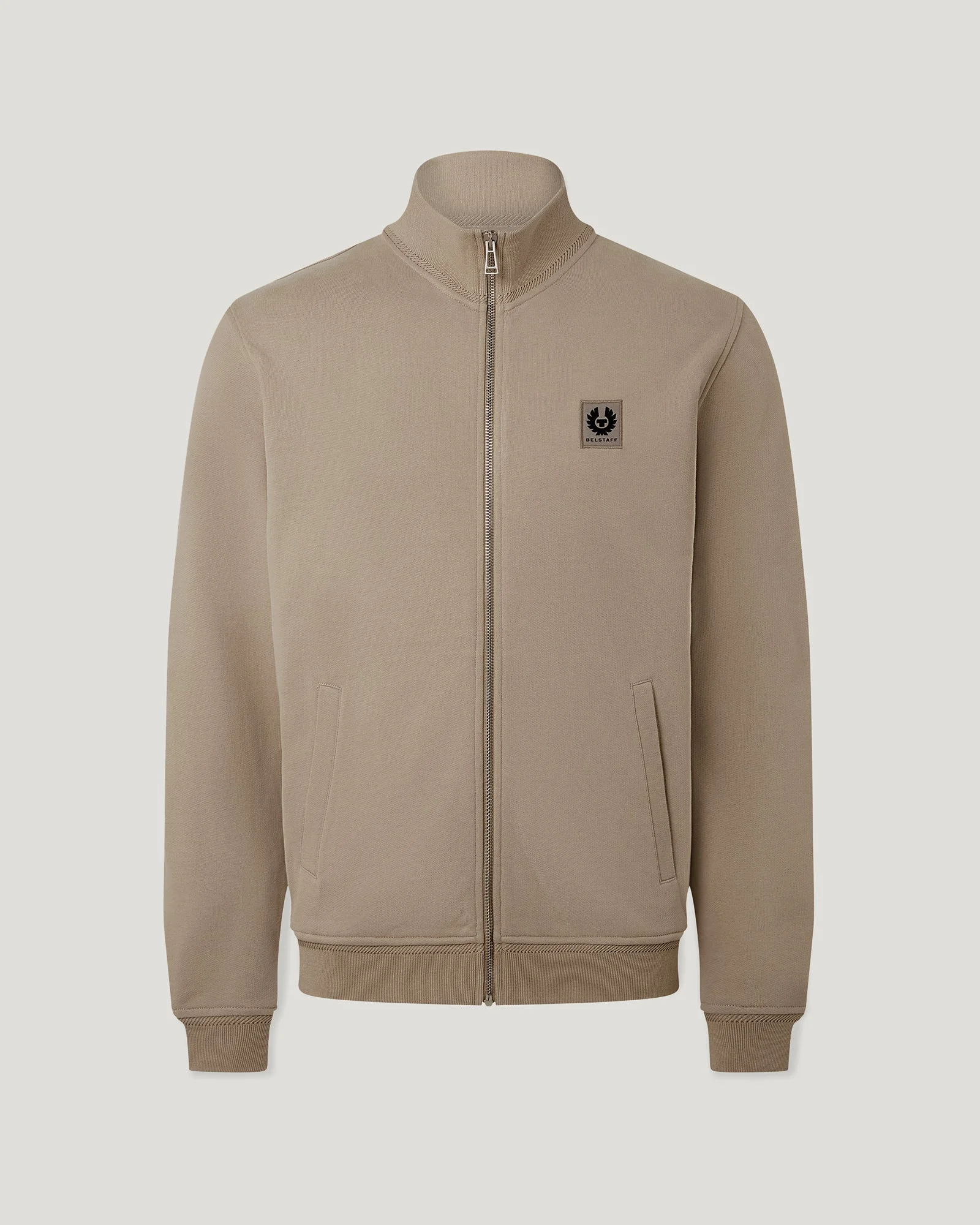 Our Belstaff Full Zip sweatshirt in Dark Sand gives three guarantees: track top convenience, sweatshirt comfort and no hood to get in the way. Cut from cotton fleece for soft and breathable natural fibres, providing lightweight comfort and durability wash after wash. DETAILS - Cotton loopback jersey - High zip-through stand collar - Ribbed collar, cuffs and hem - Two side entry pockets - Organically grown cotton - External Fabric: 100% Cotton - Made in Turkey - Dyed in Turkey - Product ref: 100050DKSND SIZE AND FIT - Cut for a regular fit - Model wears a size L - Model measures: Height: 6'2", Chest: 38", Waist: 32"