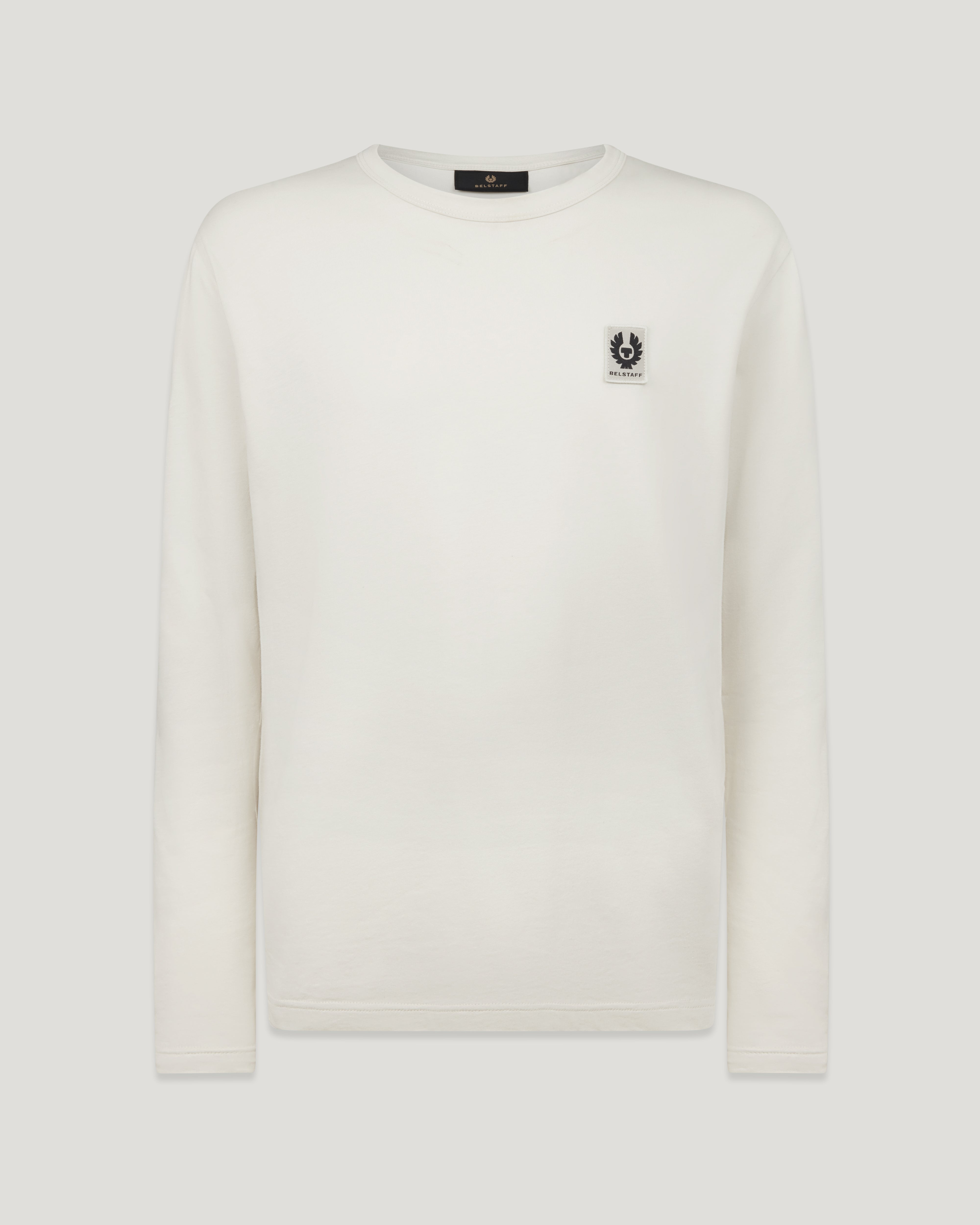 Day in, day out comfort – our classic long-sleeve crew-neck T-shirt is made from soft, light cotton jersey in a clean shade of Silver Birch. DETAILS - Soft cotton jersey - Belstaff phoenix patch on left chest - Organic Cotton Standard - Main material: 100% Cotton - Product ref: Birch100054SVRBC SIZE AND FIT - Cut for a regular fit