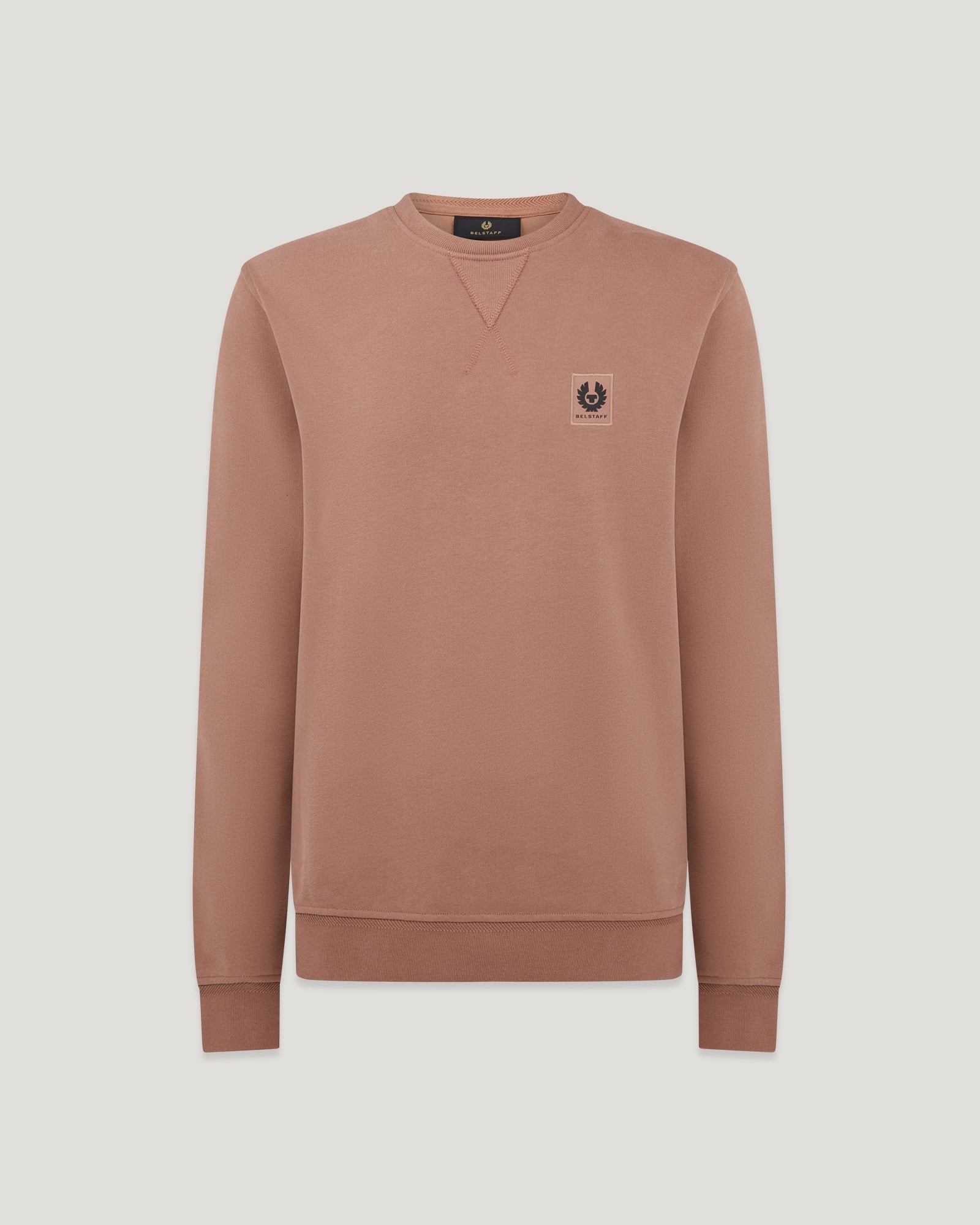 A failsafe sweatshirt cut with precision, this cotton fleece pullover in Cedar Wood is a year-round essential. DETAILS - Cotton fleece - Ribbed collar, cuffs and hem - Belstaff phoenix patch on the chest - Global Organic Textile Standard - Main material: 100% Cotton - Product ref: Wood100049CDRWD SIZE AND FIT - Cut for a regular fit