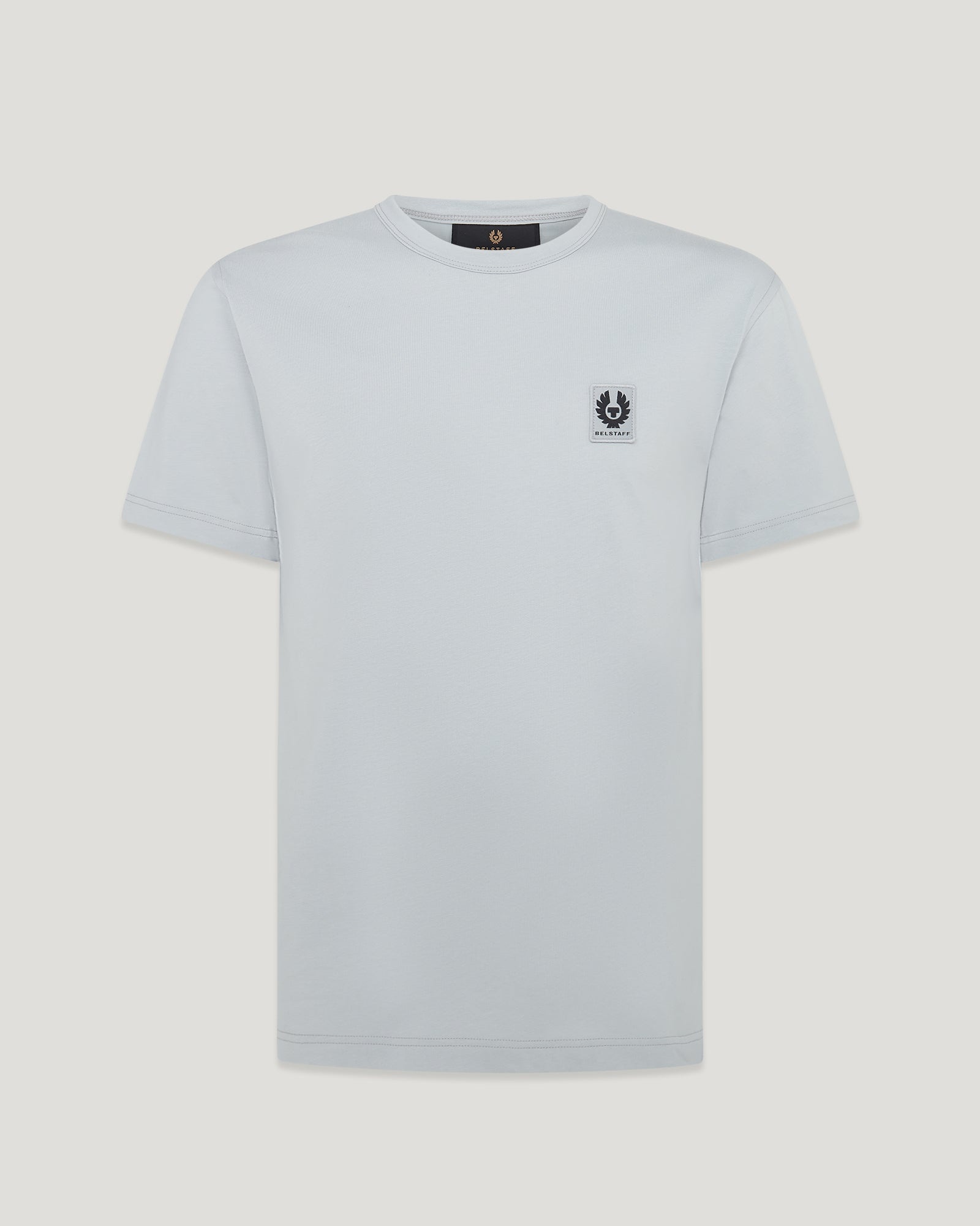 A classic crew-neck available in a palette of warm-weather colours. This short-sleeved T-shirt is cut from featherweight cotton jersey in a Quarry Blue shade for a soft, easy to wear wardrobe essential DETAILS - Featherweight cotton jersey - Classic short sleeve crew neck - Belstaff phoenix patch on left sleeve - Organic Cotton Standard - Main material: 100% Cotton - Product ref: 100055QRYBL SIZE AND FIT - Cut for a regular fit