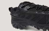 As part of our collaboration with footwear experts Merrell 1TRL, the Moab Mesa Luxe Hiker in black has been given the Belstaff treatment with elevated, monochromatic materials like full-grain leather and suede. Vibram TC5+ outsoles developed exclusively for Merrell 1TRL ensure exceptional traction on a variety of terrains. DETAILS - Mesh, full grain leather and suede upper - 100% recycled laces and webbing - 78% recycled breathable mesh lining - 100% recycled mesh footbed cover - Vibram TC5+ outsole provides exceptional traction for outdoor multi-sport activities, formulated exclusively for Merrell - Cleansport NXTa¢ treated for natural odor control - 50% recycled removable EVA foam footbed - Merrell Air Cushion in the heel absorbs shock and adds stability - Molded nylon arch shank - 10% recycled lightweight EVA foam midsole for stability and comfort - Upper: 25% mesh 35% suede 40% full grain leather; Lining: 100% mesh (78% recycled); Outsole: 100% rubber - Product ref: 106119BLACK SIZE AND FIT - This style fits differently than our standard sizing. Please refer to the Merrell size guide for the best fit.