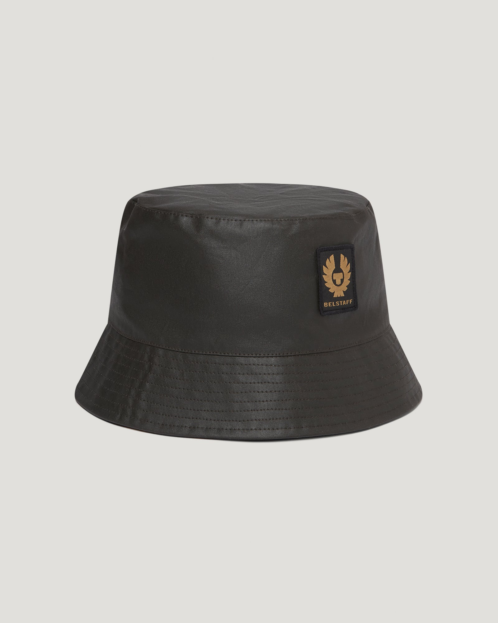Our bucket hat in Faded Olive is crafted from 6 oz. waxed cotton with a unique blend of micro and technical waxes. It’s perfect for accessorising on warm spring days and during April showers. DETAILS - 6 oz. waxed cotton, with a unique blend of micro and technical waxes - Modern bucket hat style - Multi-stitch peak detail - Cotton lining for comfort - Embroidered edge phoenix patch at front - Water repellent - By choosing our cotton products, youare supporting Belstaff's investment in Better Cottonas mission. This product is sourced via a system of mass balance and therefore may not contain Better Cotton. Learn more at bettercotton.org/learnmore - Shell: 100% Cotton - Lining: 80% Polyester, 20% Cotton - Product ref: 15496FDOLI